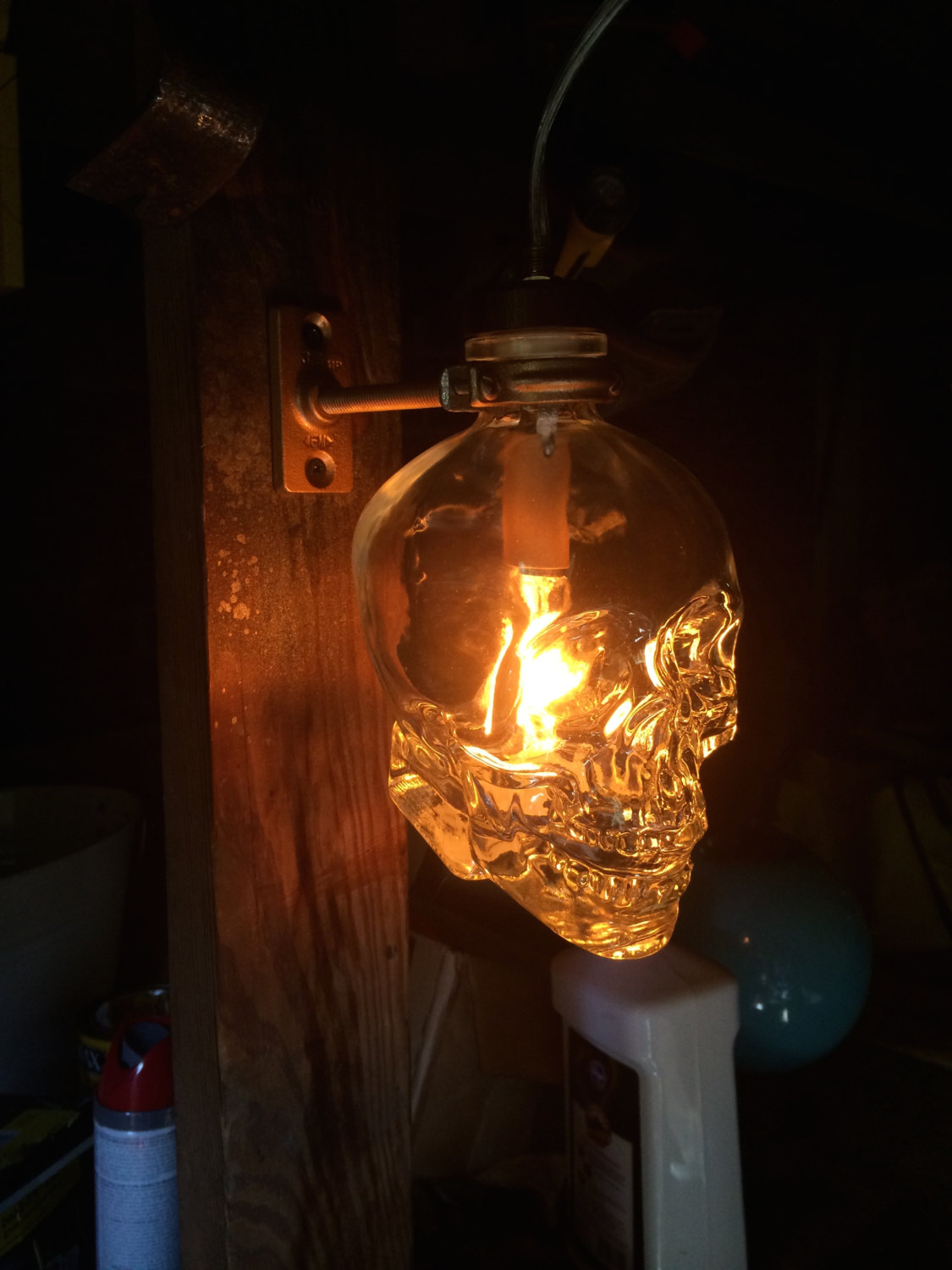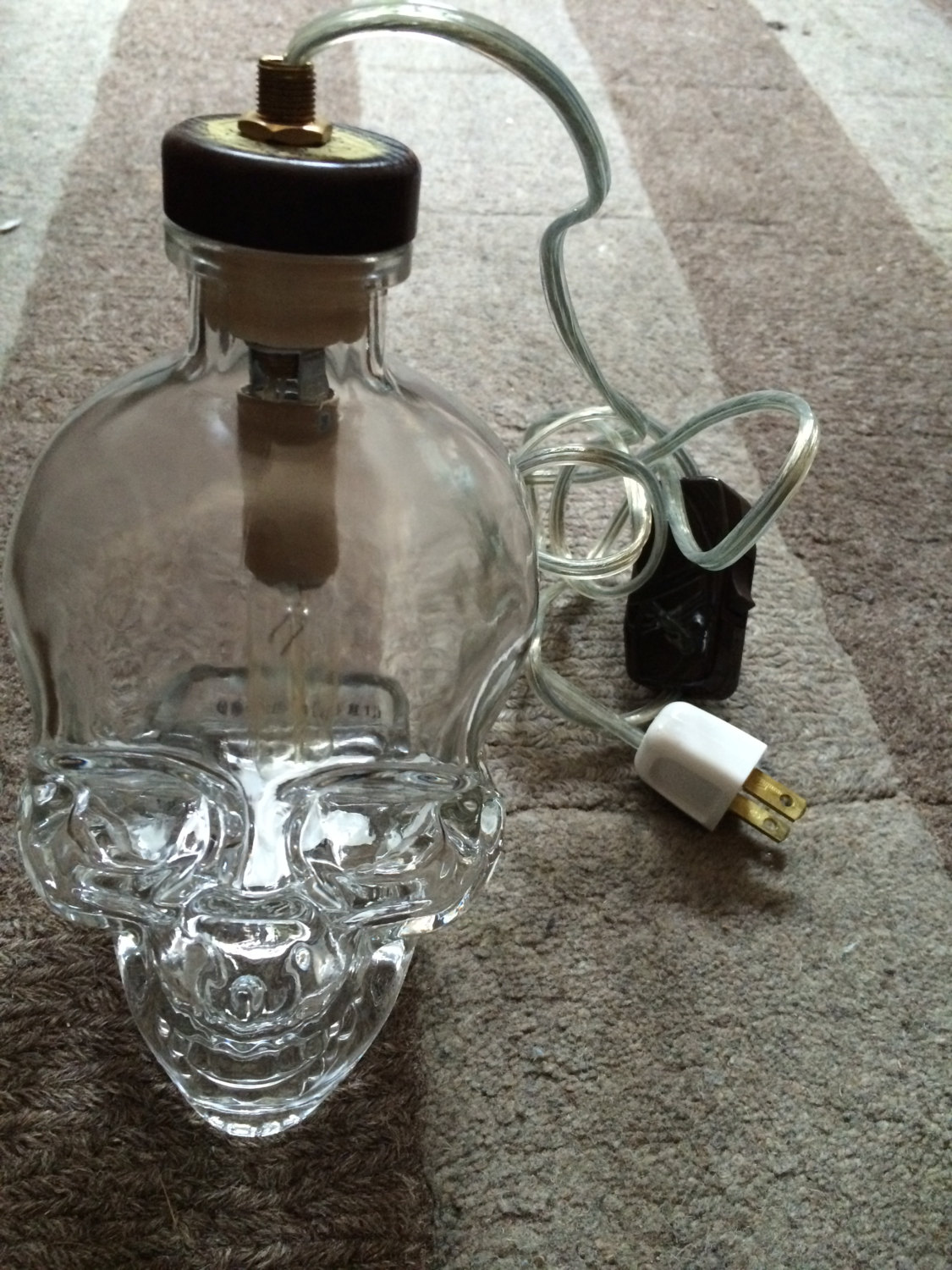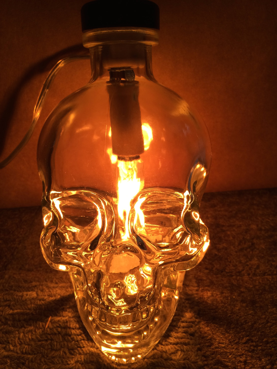 750ml Crystal Head Vodka Bottle and Cork wired with 75 watt candelabra base.