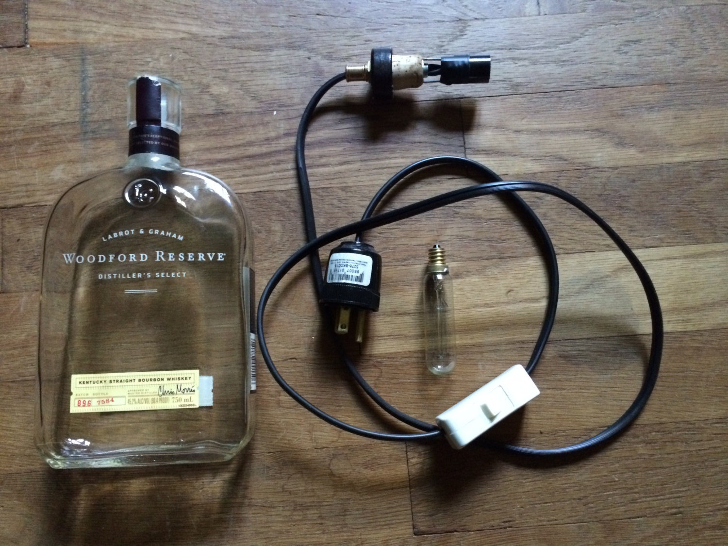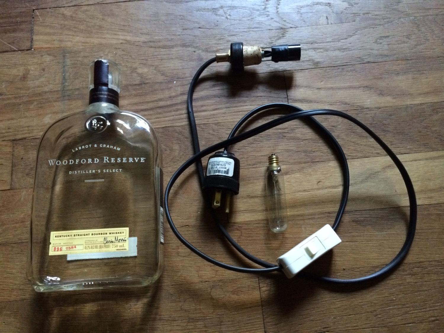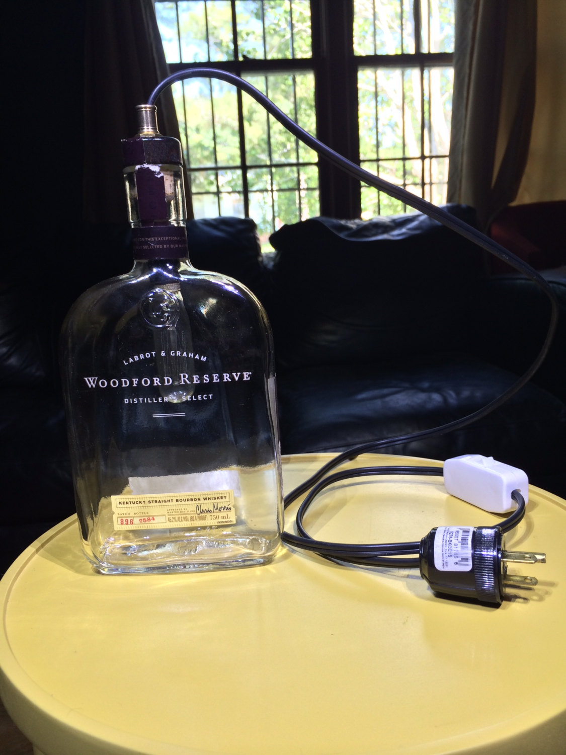 Woodford Reserve Bottle and Cork wired with 75 watt candelabra base.
