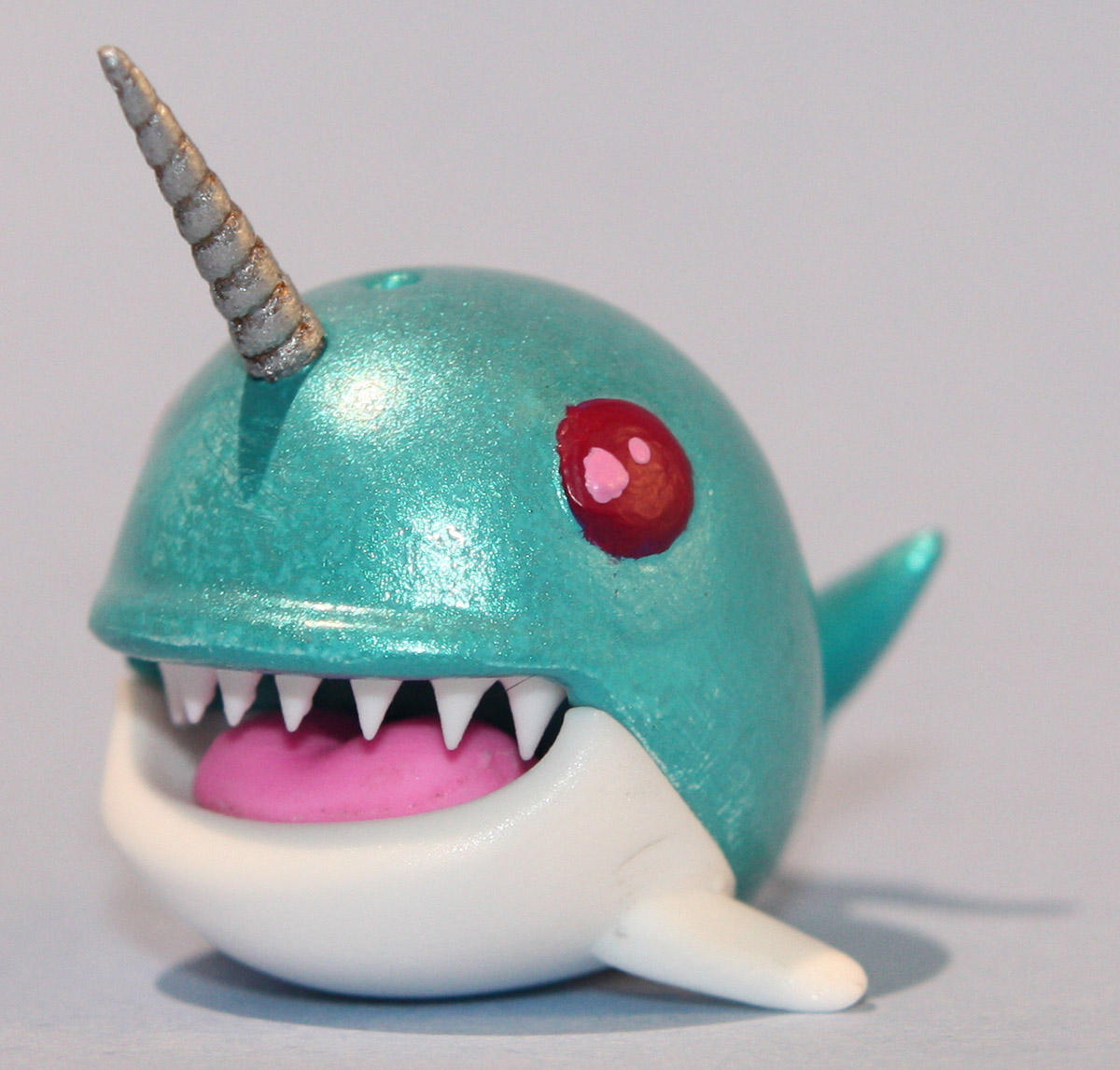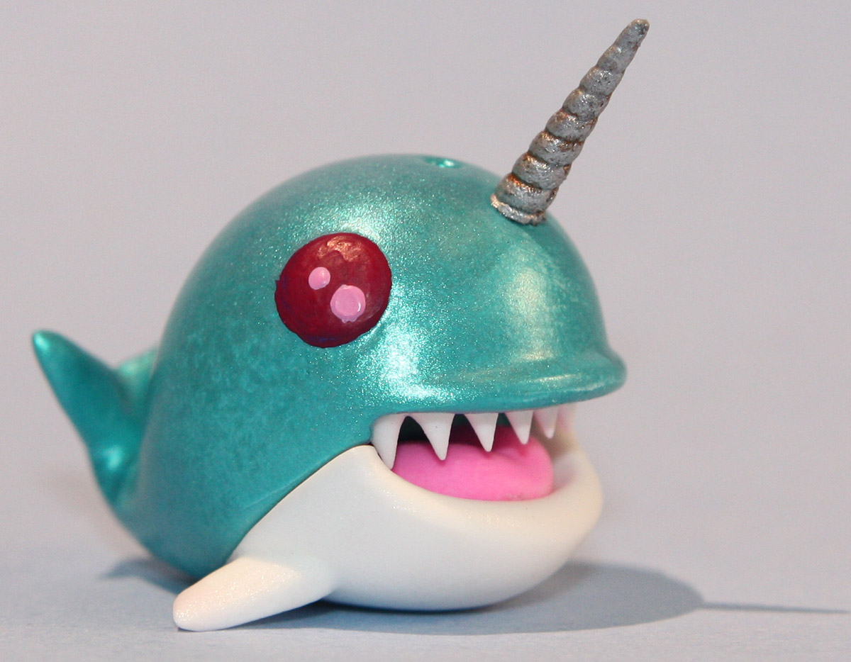 Our happy Narwhal is 100% handmade by us! If you want a horn we'll add it for free! Just let us know in the comments section at check out! He stands at just under 1in high and 1.5in long. Comes as seen in picture, but don't forget to check out the add-ons page for accessories that can be added to customize your whale! Tophats, bows, bunny ears, and more!