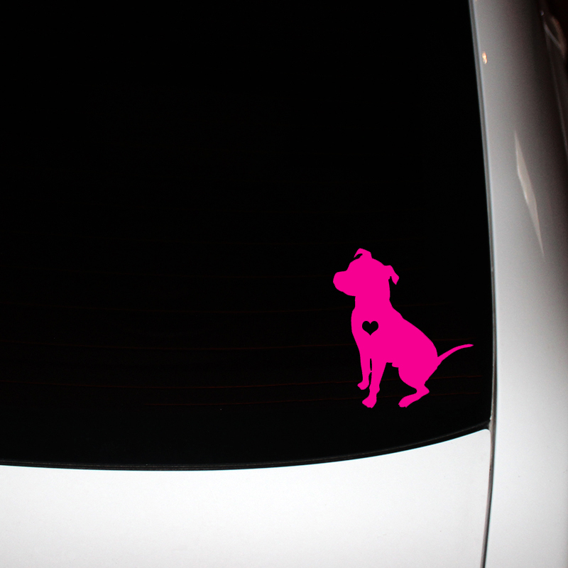 Adore-a-bull Pit Bull decal. Available in white and pink (varies from hot pink to bubblegum pink). Measures approx. 4". Vinyl is rated 5-7 Years outdoors, nearly forever for indoor use. Decals are Fade Proof, Scratch Resistant, and perfect for any flat surface. Works great as a window decal or even on laptops!