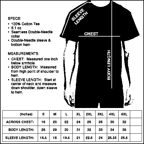 Refer to chart for sizes.