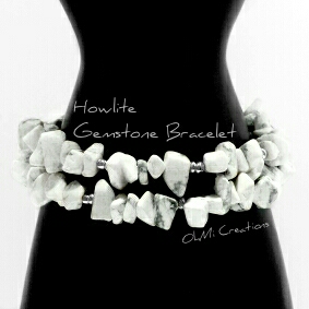 This lovely gemstone wrap bracelet is a beautiful accessory to a wide assortment of styles. Great for beachwear or date night outfits, much of the white Howlite has lovely gray veins marbling the stone. All organic jewelry is naturally varied which adds to the unique charm of each Creation. Howlite Metaphysical Properties and Meanings The Calming Stone Chakra(s): Throat, Third Eye, & Crown Howlite is often used to sever links to old suffering and hardships, freeing the wearer from emotional burden and allowing peace and understanding to prevail. This gemstone is said to calm individuals from emotional anxieties and life stresses. It increases tact and subtlety in the wearers everyday nuances. This beautiful stone has been said to promote communication and smooth over rough conversations and avoid confrontation. Self expression and creativity are strengthened by Howlite as well as progress.