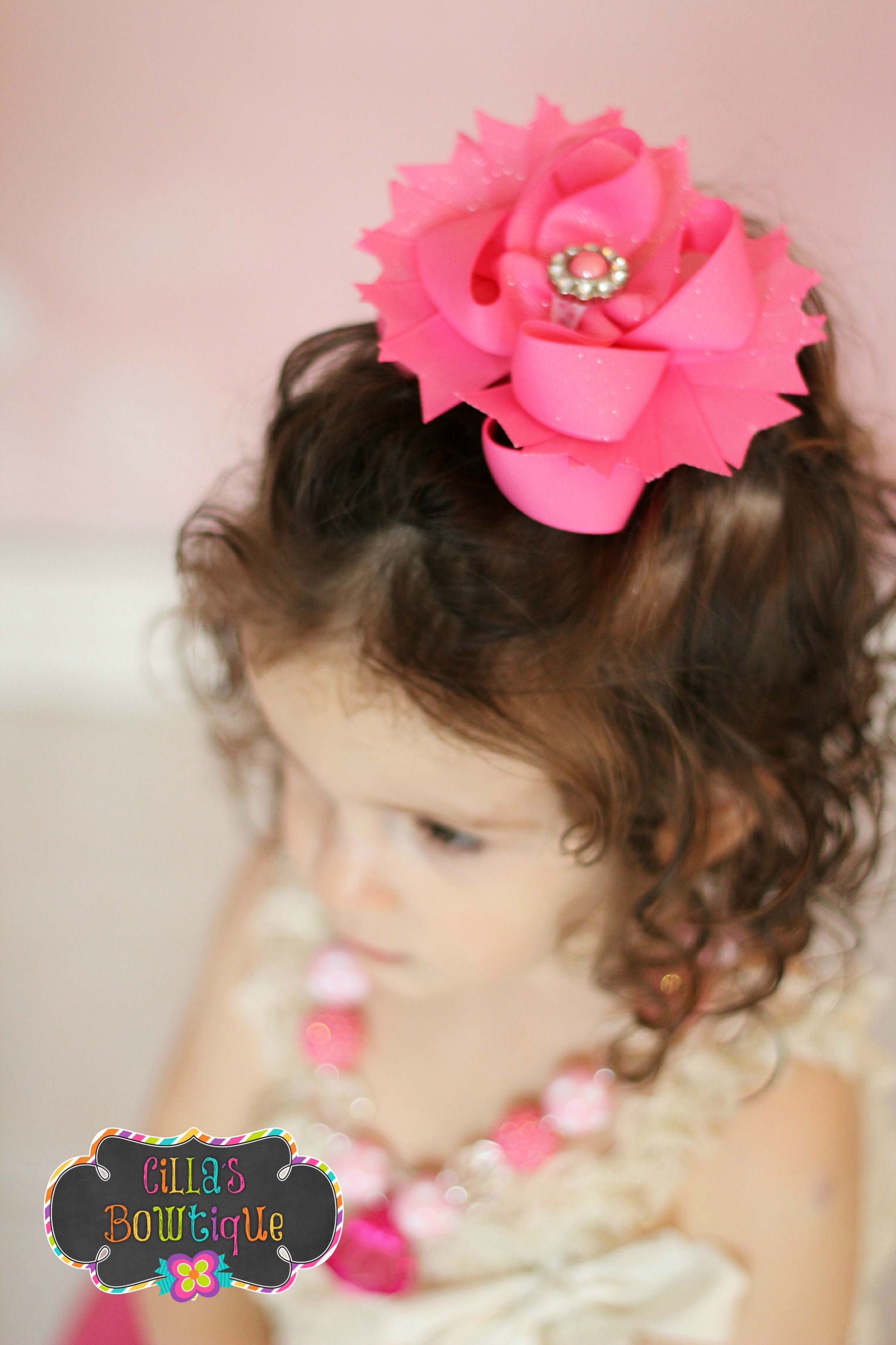 Hot Pink Stacked Boutique Hairbow-1
