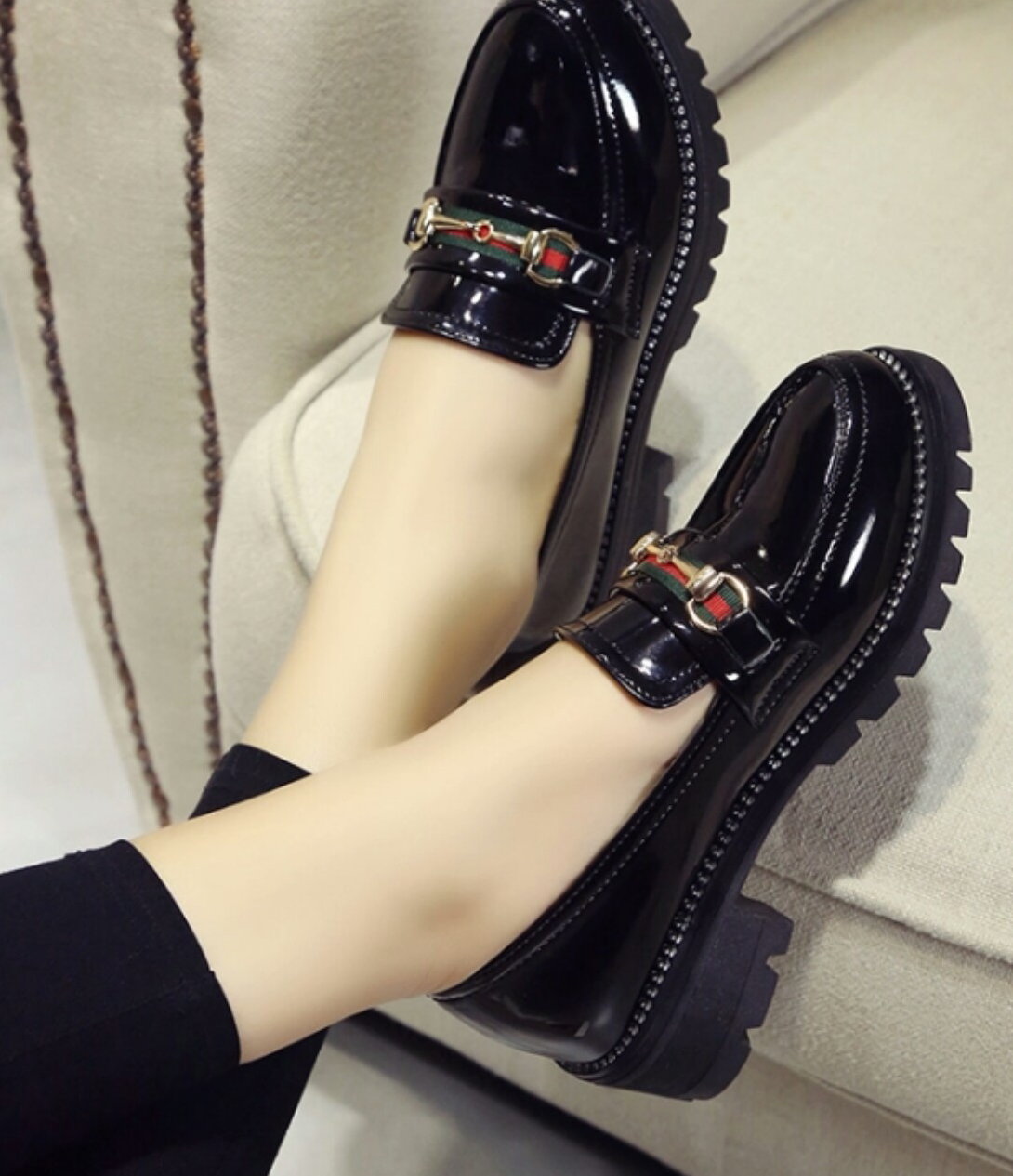 Stunning England Vintage Patent Leather Metal Buckles Loafers Shoes Specifications (approx..) Size:35-36-37-38-39-40 Length (mm):225-230-235-240-245-250 Color : Burgundy, Black Material : PU Patent Leather