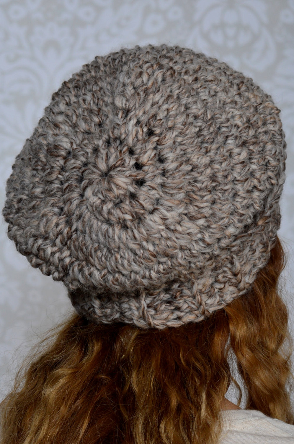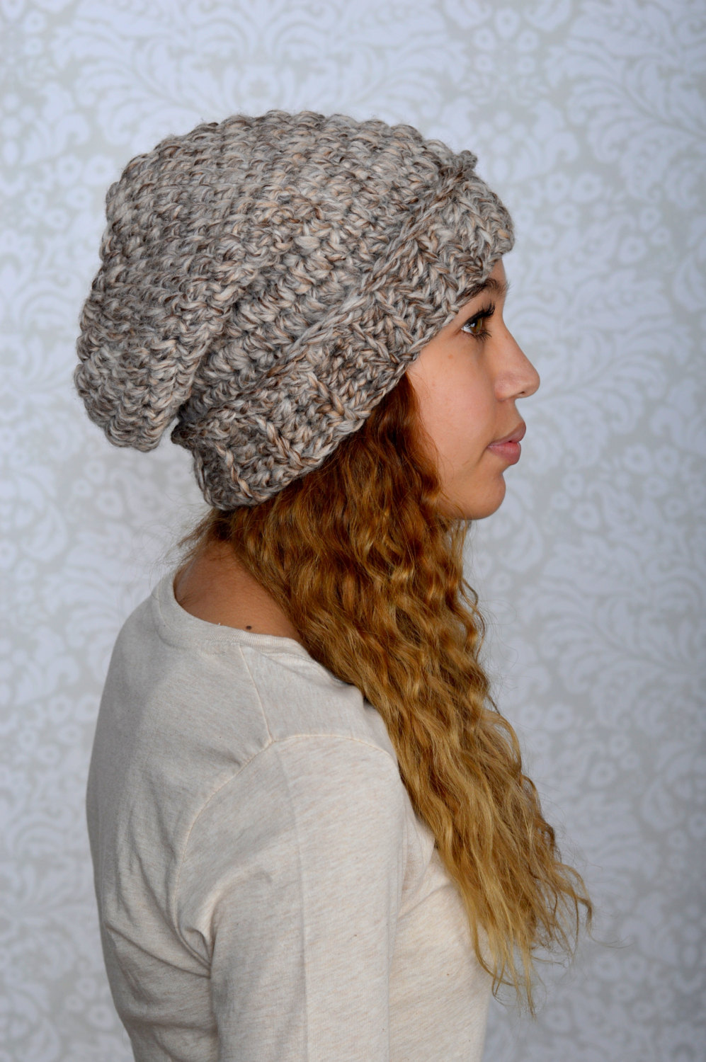 Handmade super chunky slouch hat. ____________________________________________________ D E T A I L S: - Color: Beige/Grey - Materials: Wool Blend - Size: Women's, one size fits most - Type: Crochet ____________________________________________________ CARE INSTRUCTIONS: - Hand wash in cold water. Lay flat to dry. ____________________________________________________ S H O P All Items: http://www.etsy.com/shop/PiperAndStone Books: http://www.etsy.com/shop/SlightlyEmbellished Made in a smoke free, pet free environment