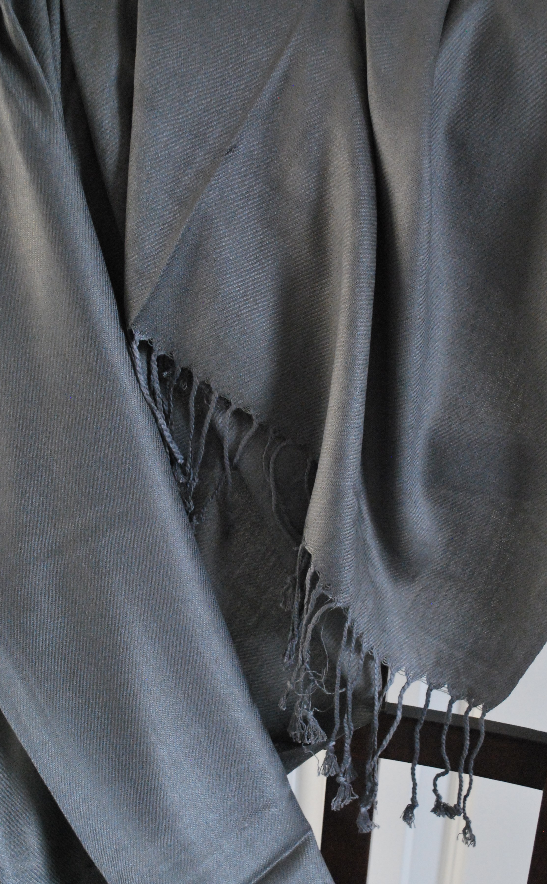 www.facebook.com / Cover Up Couture This light weight pashmina stole comes in rich solid colors. It's cool to the touch and therefore can be worn all year long. It's long enough to give you full coverage. An all time favorite of the clients! Material: Viscose & Acrylic W x L= 24" x 60" Hand wash only. Lay flat to dry.