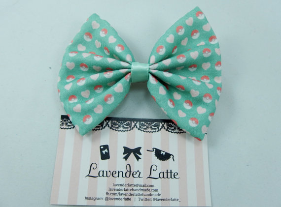 Kawaii Pokeball Mint Hair Bow 90s kid Pastel Hair Clip Pikachu Video Game Geekery Accessories