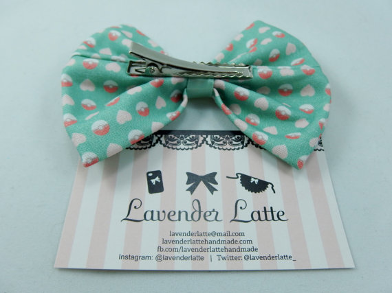 ♥ All bows are finished with a sturdy metal alligator clip on the back to ensure it stays secure in your hair all day long. ♥ Our medium bows are approximately 3.75 inches or 9.5cms wide and 3 inches or 8 cm high. Our bows are photographed with our business card for reference. ♥ Made from high quality cotton fabric ♥ Listing is for one bow only ♥ Lavender Latte bows stand out from the rest by being completely sewn rather than folded to maintain the highest quality and stand the test of time. ♥ Our bows are completely handmade, we take a lot of care and pride in the creation process from from sourcing fabric, pressing, cutting, stitching, turning out, tying up, clipping and finishing. ♥ Can’t find what you're after? We love requests and custom orders! ♥ Instagram: @LavenderLatte ♥ Facebook: www.fb.com/lavenderlattehandmade ♥ Twitter: @LavenderLatte_ ♥ Love it? Pin it! www.pinterest.com/LavenderLatte/ ♥ About Lavender Latte ♥ We are Kathryn and Terri, a mother daughter team with a passion for creating gorgeous and girly accessories. We are both adore being able to create super cute pieces that so many people love and wear. Lavender Latte is our full time job, working six or seven days a week to create our special pieces, but we wouldn’t have it any other way. When you purchase from us you are helping to support our handmade business dreams. ♥ Quality ♥ Lavender Latte items are in every way one-of-a-kind treasures. Due to the handmade nature of our items and individual crafting of each one, no piece is identical to any other. Our pieces are sisters, not twins and this makes everything we do entirely unique. All of our items are created in an entirely smoke-free environment where we can ensure everything we make for you has been done so in a thoughtful manner. Everything you receive is packaged in our signature style and can be personalized for gifting plus special occasions. Our effort is always to make your experience a special one and meet all your expectations of quality so if you have questions regarding this or special requests please contact us. ♥ Our Policies ♥ Please read about our shipping details and shop policies before purchasing your Lavender Latte cuties. We adore our customers and want you to love your Lavender Latte experience and items as much as we love you, so please do read our policies before contacting us with any questions or concerns you may have.