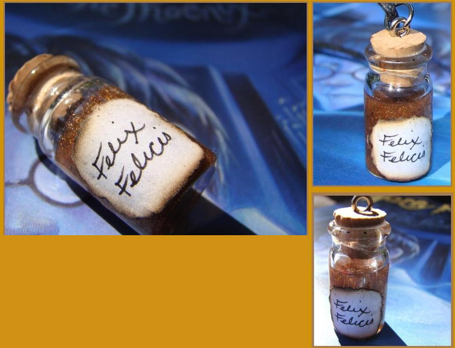 Bring some of your own luck to the next test or workday with a Felix Felicis potion! The potions are gold liquid stationary inside of a small glass vial. A hand burned label is sealed on the front, and these pendants do come with a four-leaf clover charm! They arrive to you on a black cord, ready to wear!