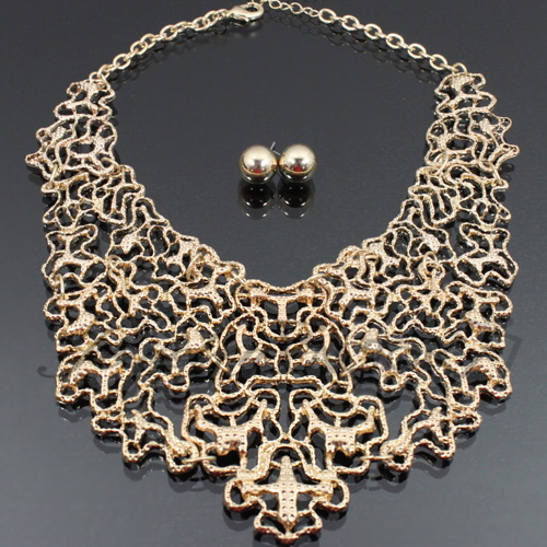 ON SALE! GOLD FILIGREE BIB STYLE CHOKER FASHION NECKLACE SET