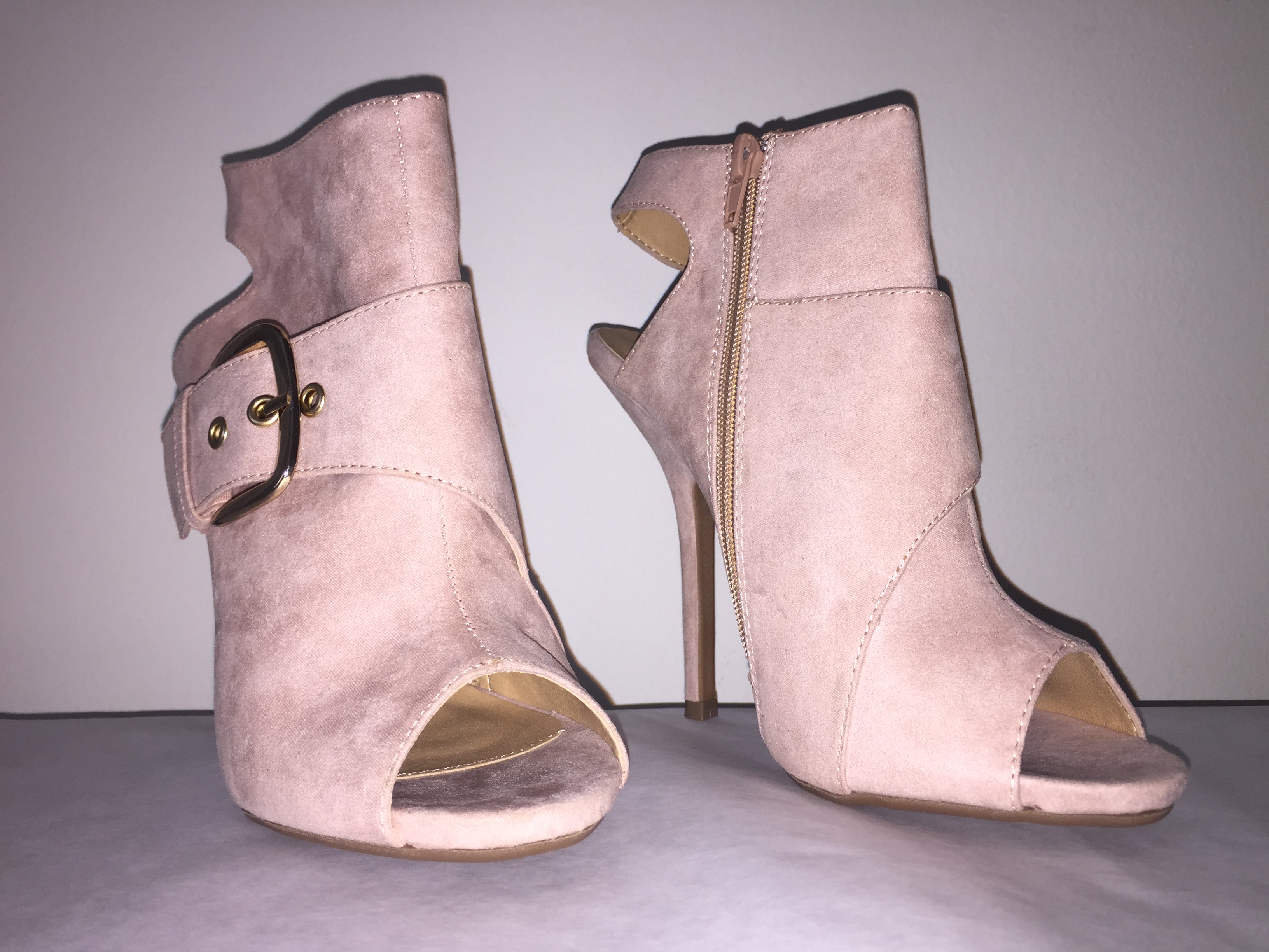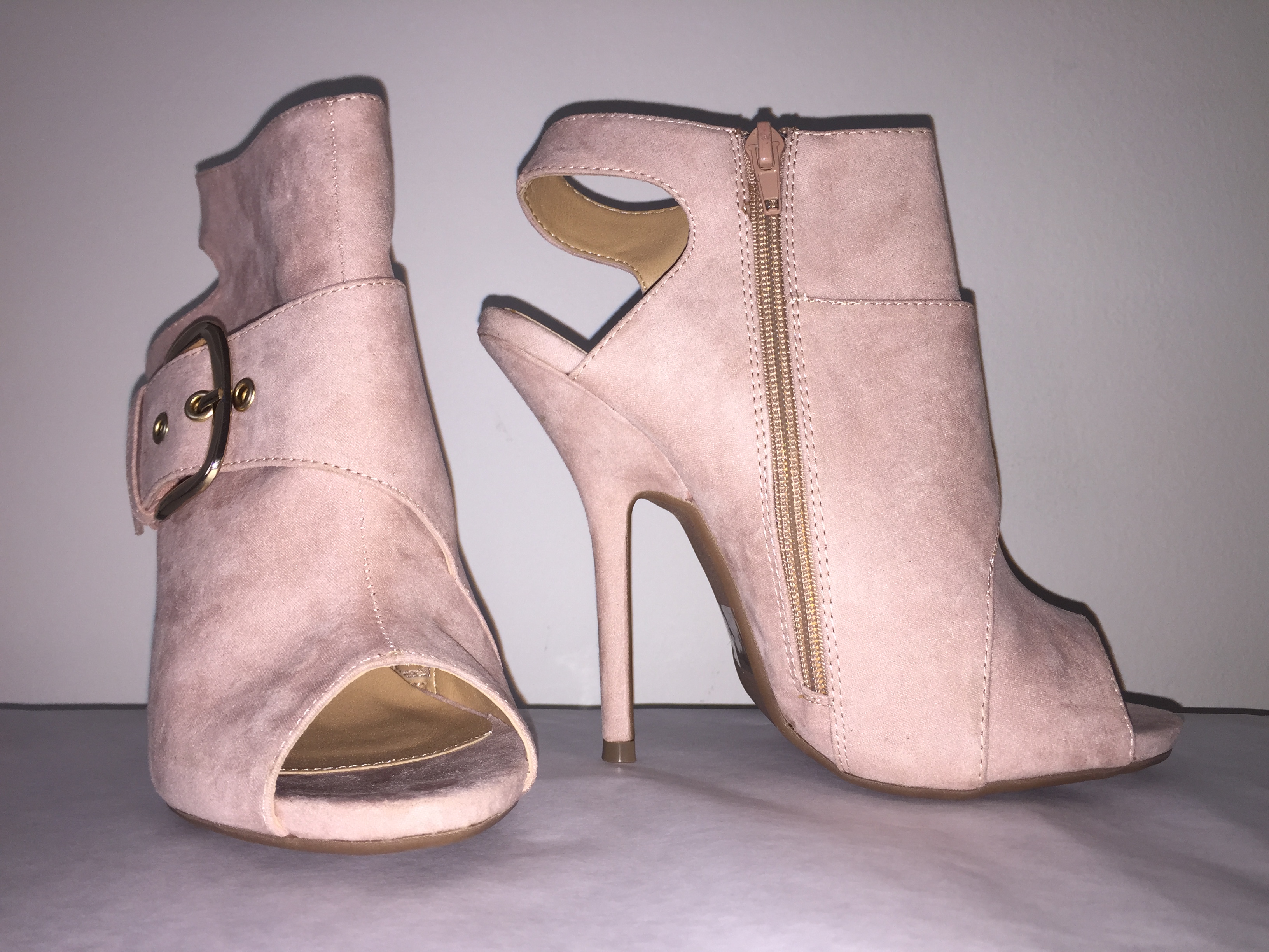 Pink Suede Peeptoe Sling Back Bootie Heels