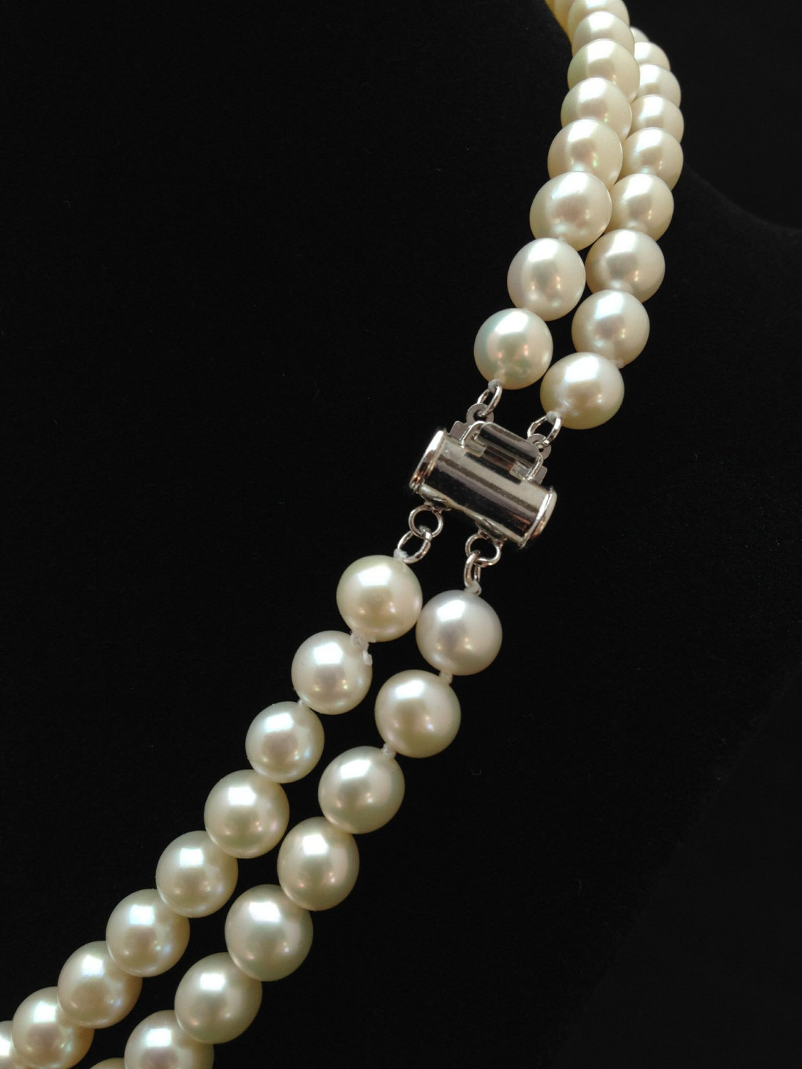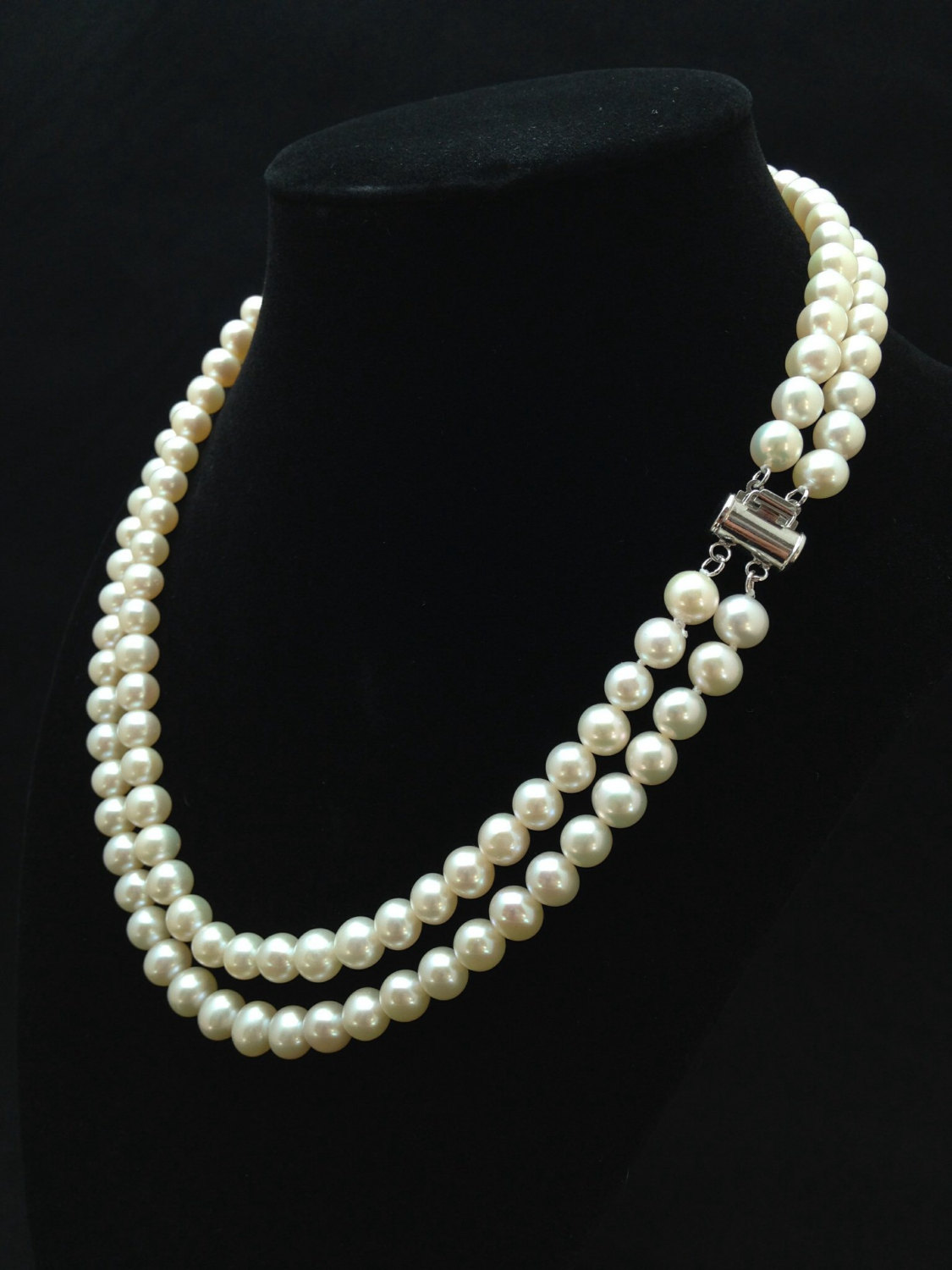 Genuine Pearl Necklace, AAA+ Pearl Necklace, Double Strand Pearl Necklace, Multi strand Freshwater Pearl Necklace-1
