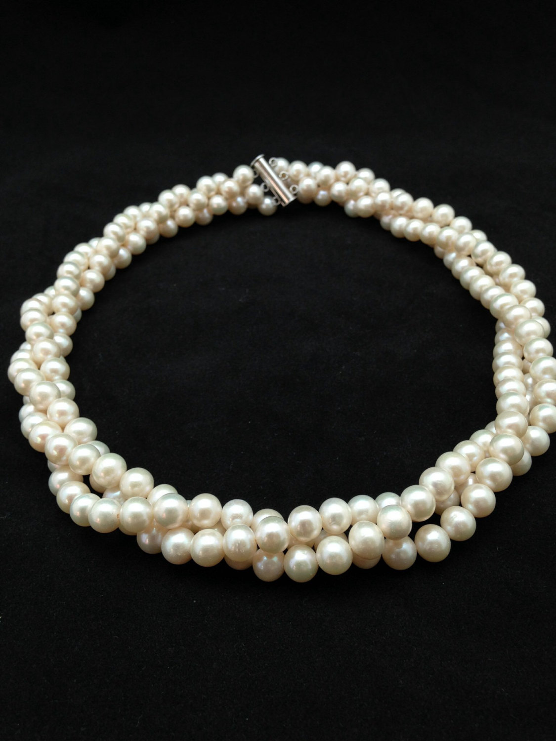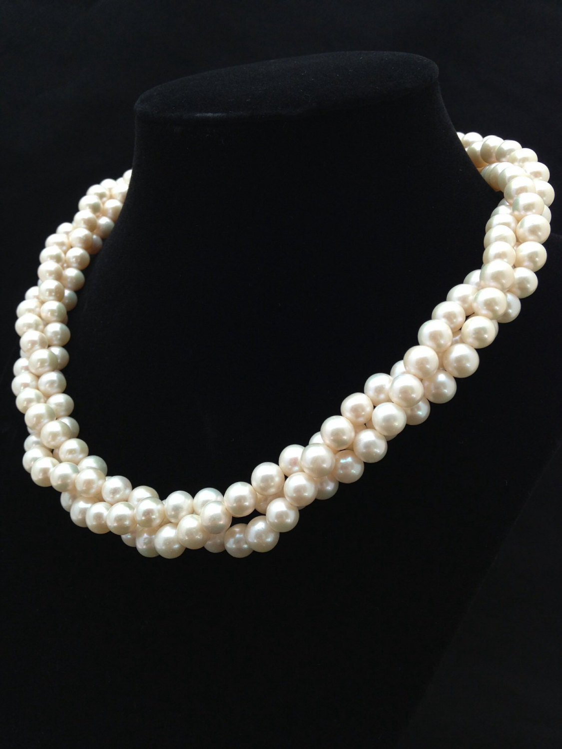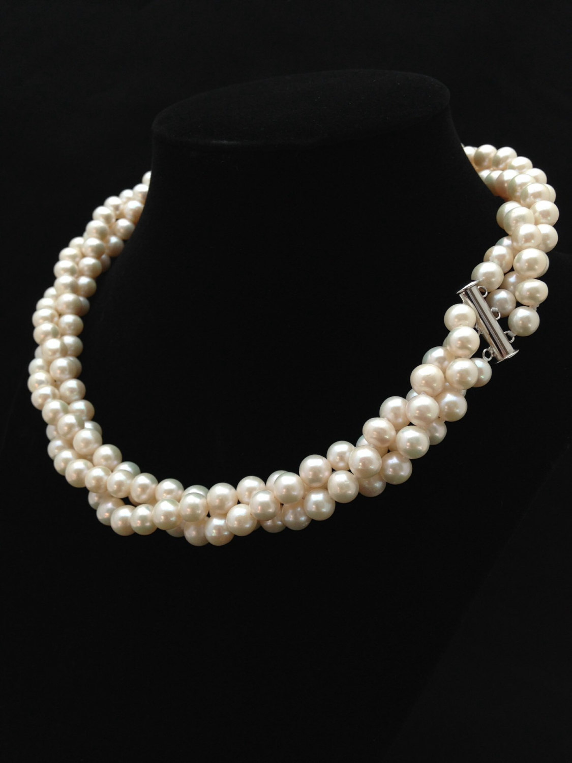 Twisted Triple strand Pearl Necklace,AA+ Multi Strand Genuine Pearl Necklace,Freshwater Pearl Necklace-1
