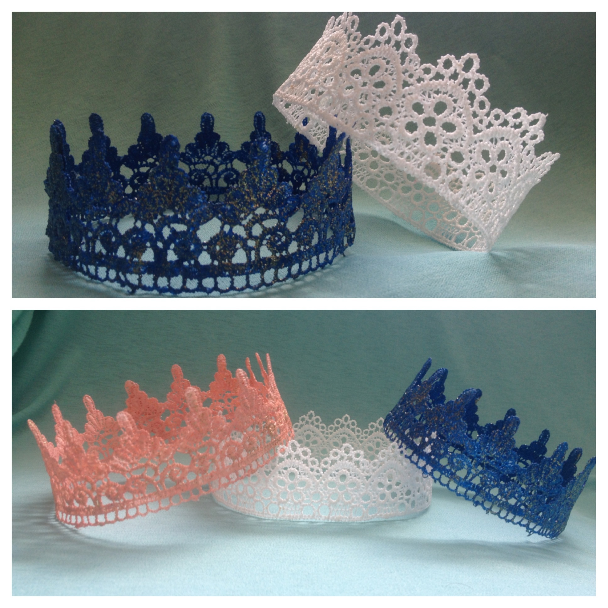 This sweet lace princess or prince crown is perfect for a photo session, birth announcements, gender reveal party or any special occasion! Also darling as a cake topper! Each crown is hand painted then dusted with glitter if you like! If in need of a special color please let me know!