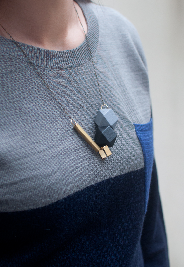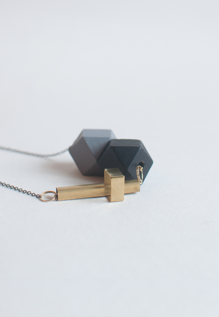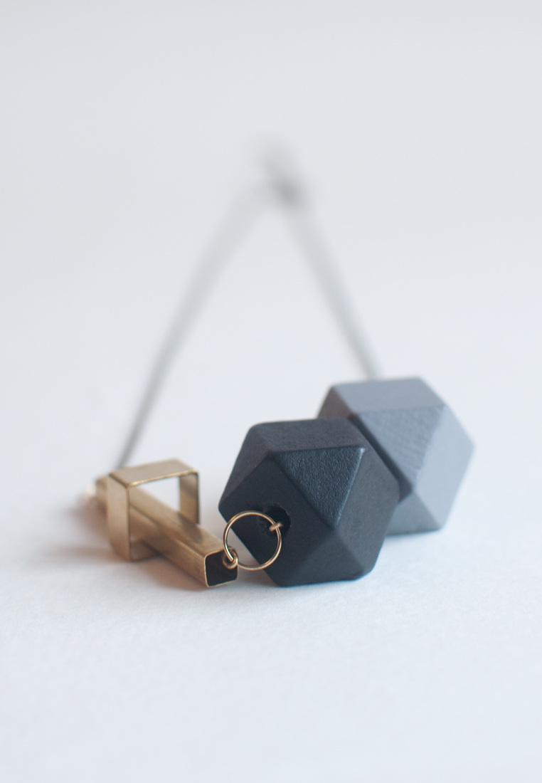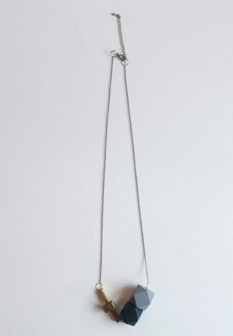 Gorgeous, geometric beads offer mesmerizing color on a simple handcrafted necklace accented with a single gold plated chain. Length: 23" Extender: 2" Weight: 12g Lobster clasp closure Wood / gold plated