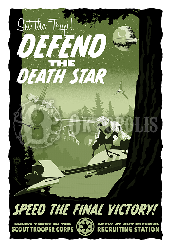 SALES of THIS PRINT are on HOLD until after Star Wars Celebration April 16-19, 2015 Join the Empire on Endor and help Defend the Death Star in this illustration by Lucasfilm artist Brian Miller. This is your chance to own 1 of only 10 hand signed and numbered artist proofs of Crush the Rebellion. This is an officially licensed Star Wars lithograph authorized by Lucasfilm and produced by ACME Archives. “Defend the Death Star" by Miller 18" x 26” Silkscreen Print on 140# French Art Paper Hand numbered edition of 10 artist proofs from the ACME Archives limited edition. Signed by illustrator Brian Miller ™ & © Lucasfilm Ltd. All rights reserved. Used under authorization. The shipping fee for this print includes the following: - Print is rolled in a transparent poster sleeve - Print is placed in a rigid poster tube - Shipping is upgraded to USPS Priority Mail NOTE: This print does not ship until AFTER Star Was Celebration Anaheim. Estimated shipping date is April 21st.