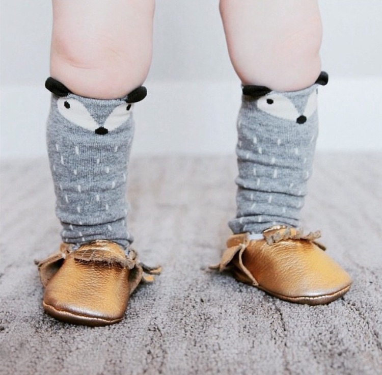 Love these new fox socks -- perfect piece with any outfit spring or fall. Available in gray and brown. Small: 1-3 years Medium: 3-6 years *Washing Recommendations: Hand wash and hang dry. DO NOT put clothing in the dryer to prevent shrinking and wear on fabric.