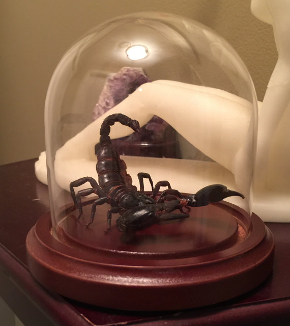 The scorpion has been dried and positioned to ensure a lasting preservation