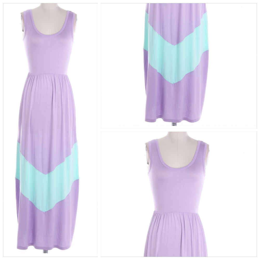 Get'em while it's hot! Or I guess we should say before it's hot! Now introducing the Natasha, a casual-chic, lavender maxi featuring a scoop neckline and a mint chevron stripe at the knee. Compliment this piece with loose flowing waves, wedges, and your favorite pair of shades during a summertime brunch at the boathouse. Size Chart: Small - 4 Medium - 6 Large - 8