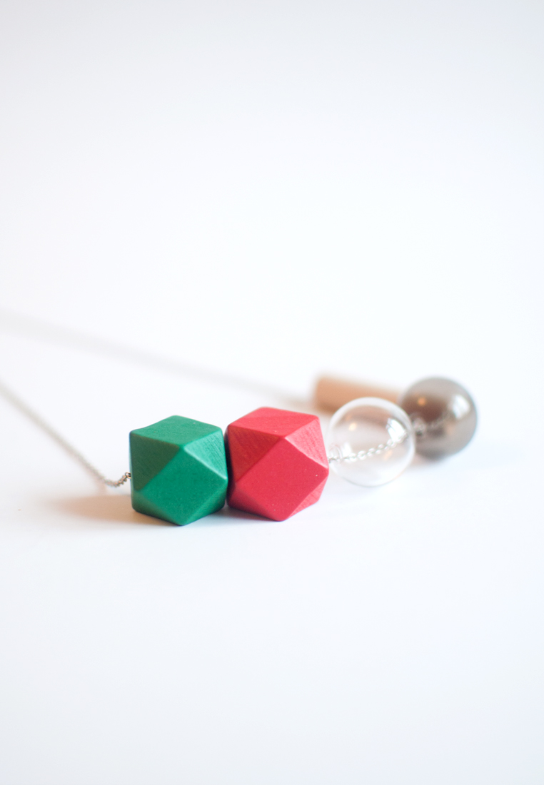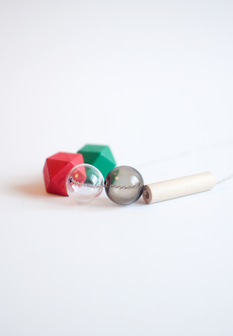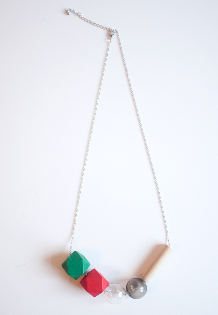 A stylish handcrafted glass necklace offers an impressive style with different shapes of wood beads. Length: 22" Extender: 3" Weight: 15g Lobster clasp closure Wood / glass / silver plated