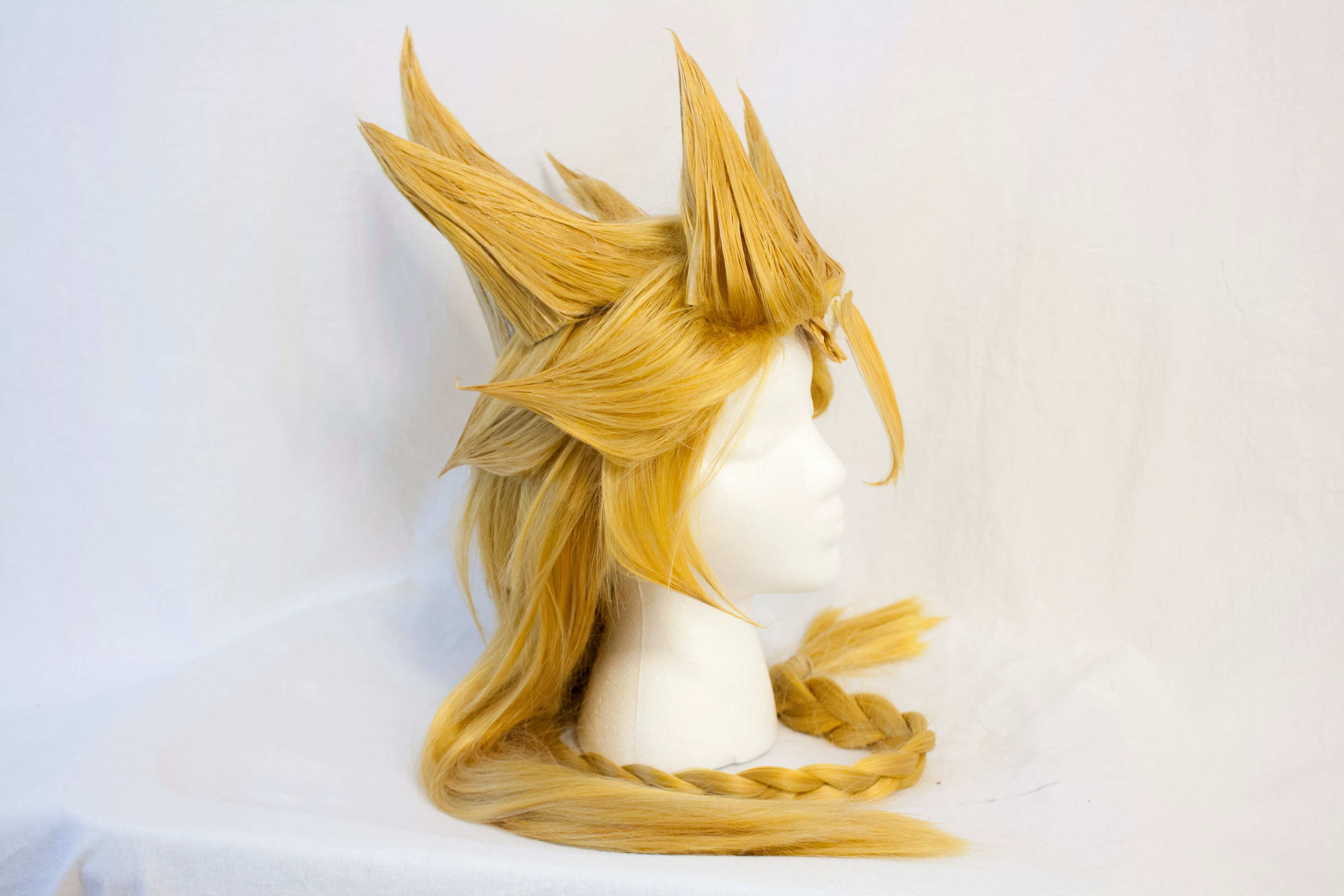 The original wig was an Arda Jareth long in Light Blonde. I reworked a lot of the wefts and sewed in two packs worth of additional short wefts.