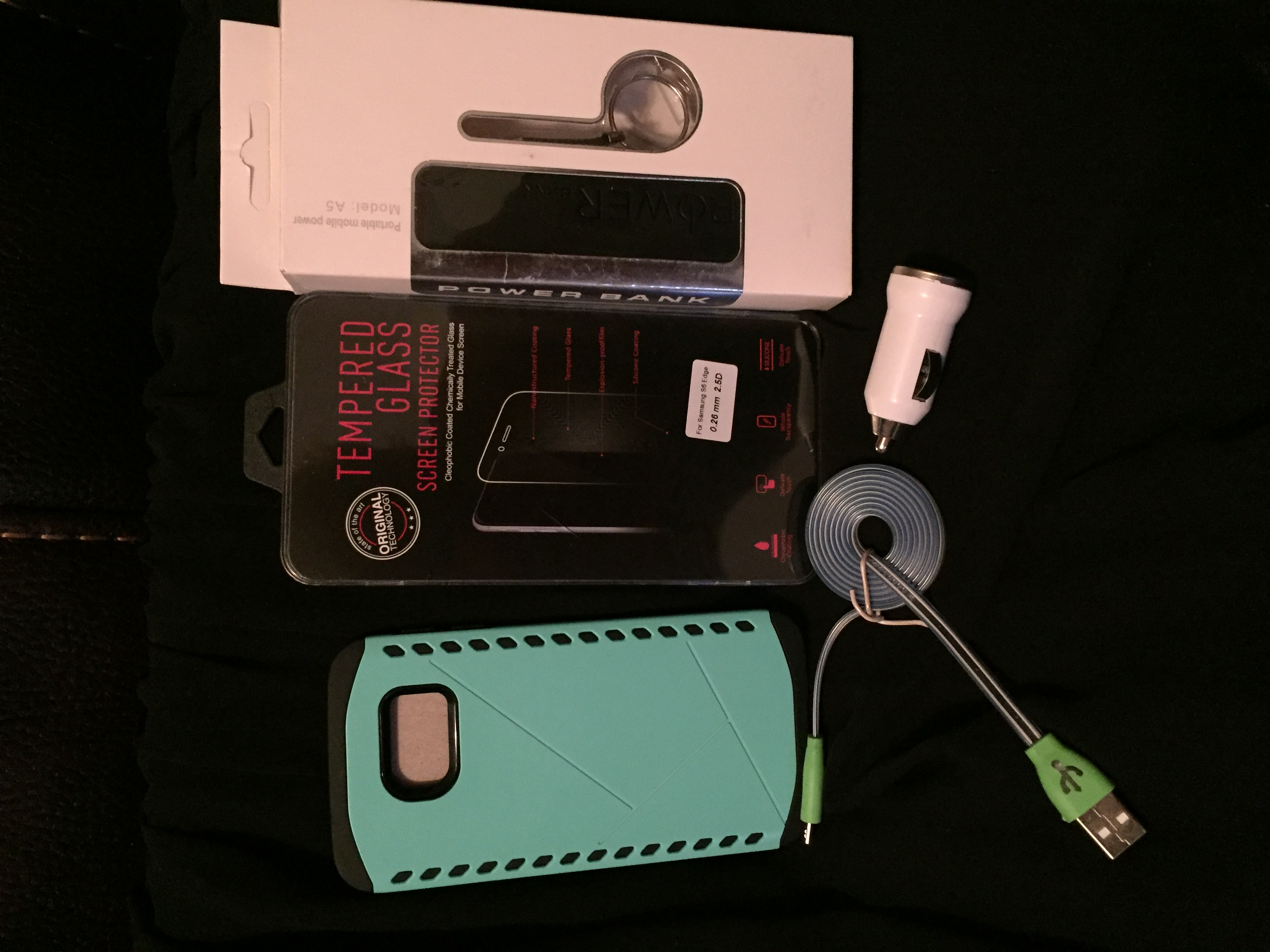 Samsung S6 Edge Bundle: Heavy Duty Protective Case Tempered Glass Lighted LED Charger Portable Power Bank Car Charger Adapter