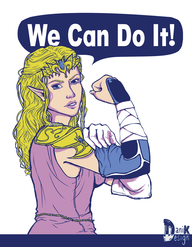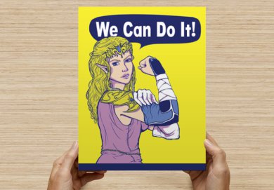 Come on girls, we can do it! Features Zelda from Ocarina of Time pastiching the Rosie the Riveter pose ❤ This product is a 8.5"x11" print, printed on 105g/m2 Smooth Matte paper. This print is available in 2 other sizes: ~ Postcard 4"x6" - printed on Recycled Matte paper ~ Poster 11"x17" - printed on 150g/m2 Glossy paper, mailed in a Kraft tube (yellow only) * DaniKDesign logo won't appear on the product