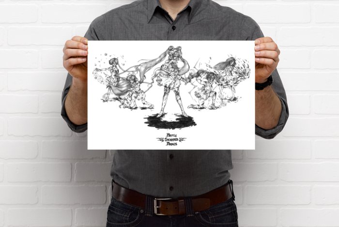 These sexy babes are from set 1 of my "Battle Scarred Babes" series. Features the Sailor Scouts from Sailor Moon ❤ This product is a 11"x17" print, printed on 150g/m2 Glossy paper, mailed in a Kraft tube. This print is available in 2 other sizes: ~ Postcard 4"x6" - printed on Recycled Matte paper ~ Print 8.5"x11" - printed on 105g/m2 Smooth Matte paper * DaniKDesign logo won't appear on the product
