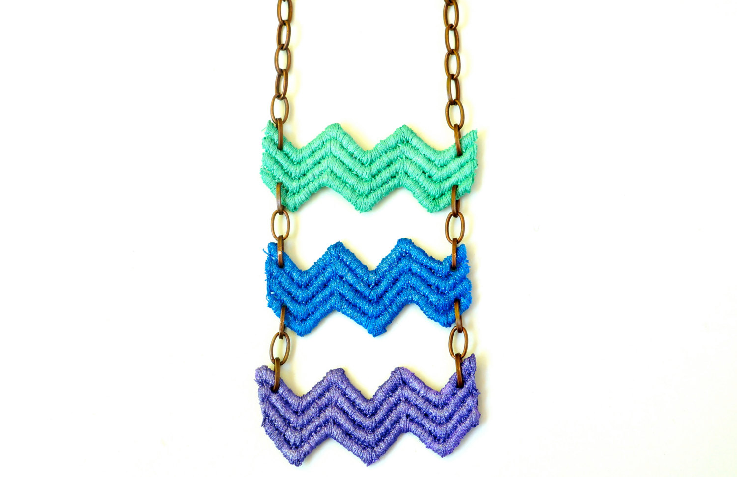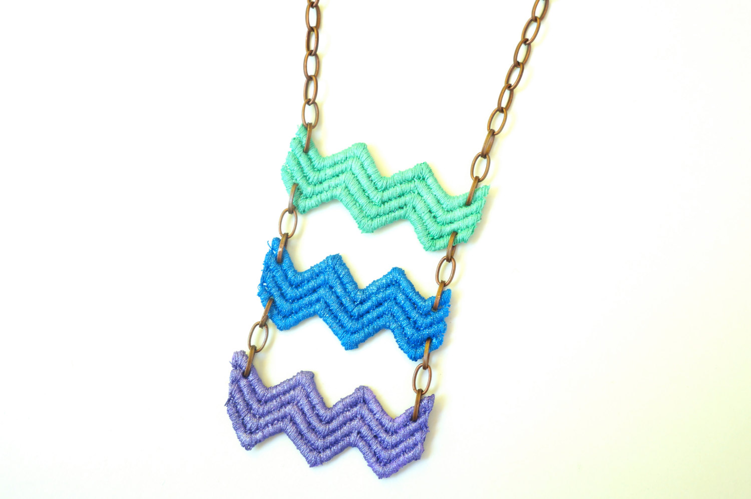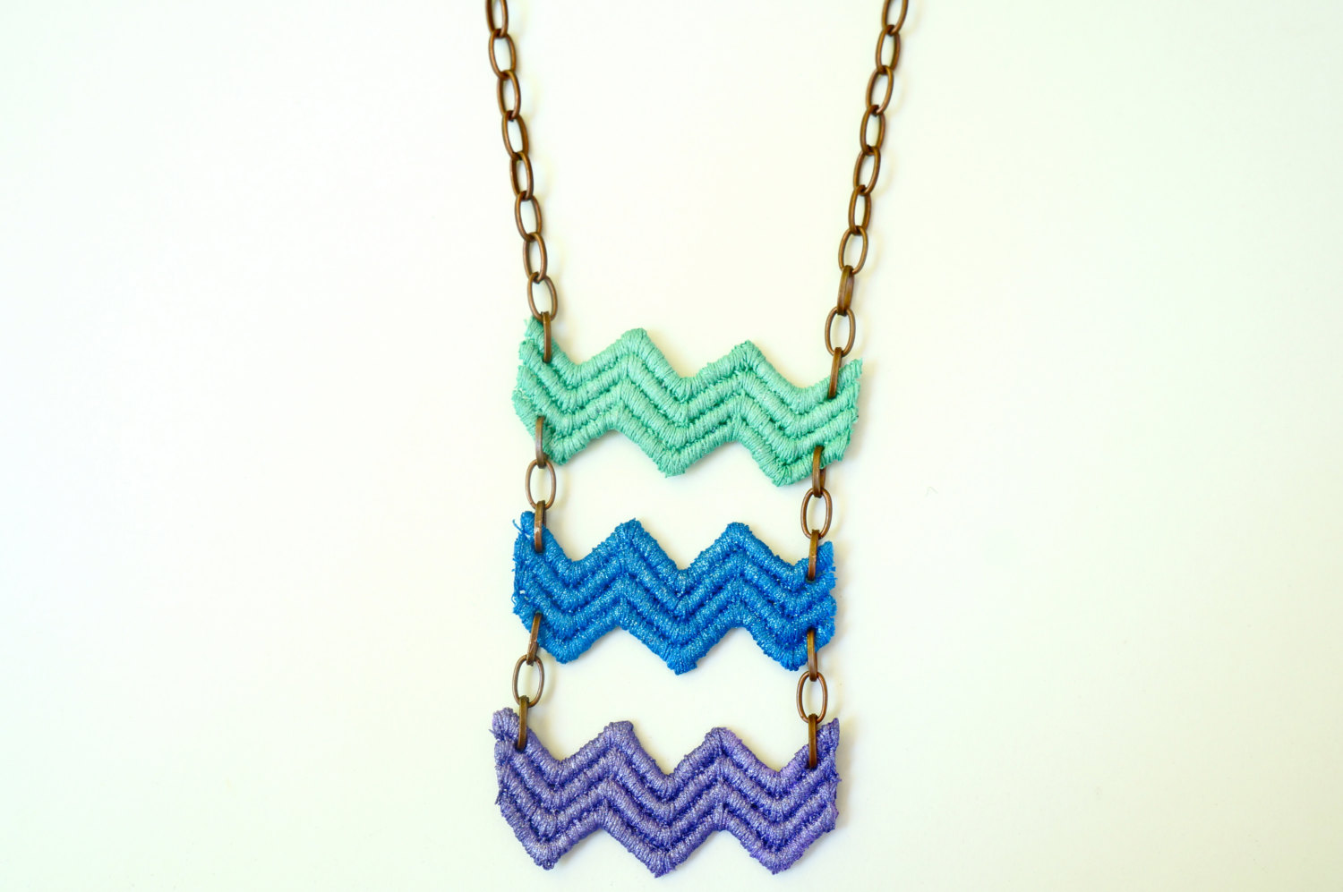 Chevon Lace Statement Necklace in Mint Green Blue Purple