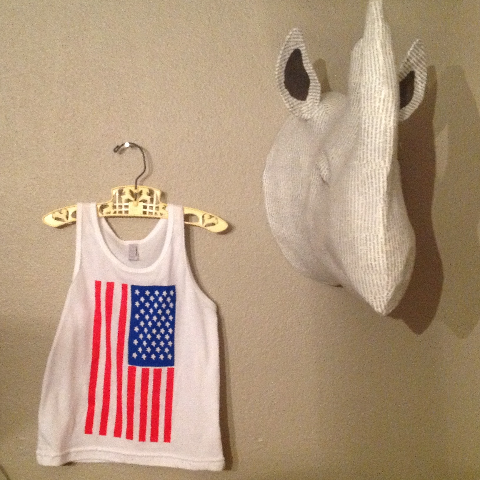 Illustrated american flag tank. Screenprinted on American Apparel 50/50 blend white tank for a super soft vintage feel.