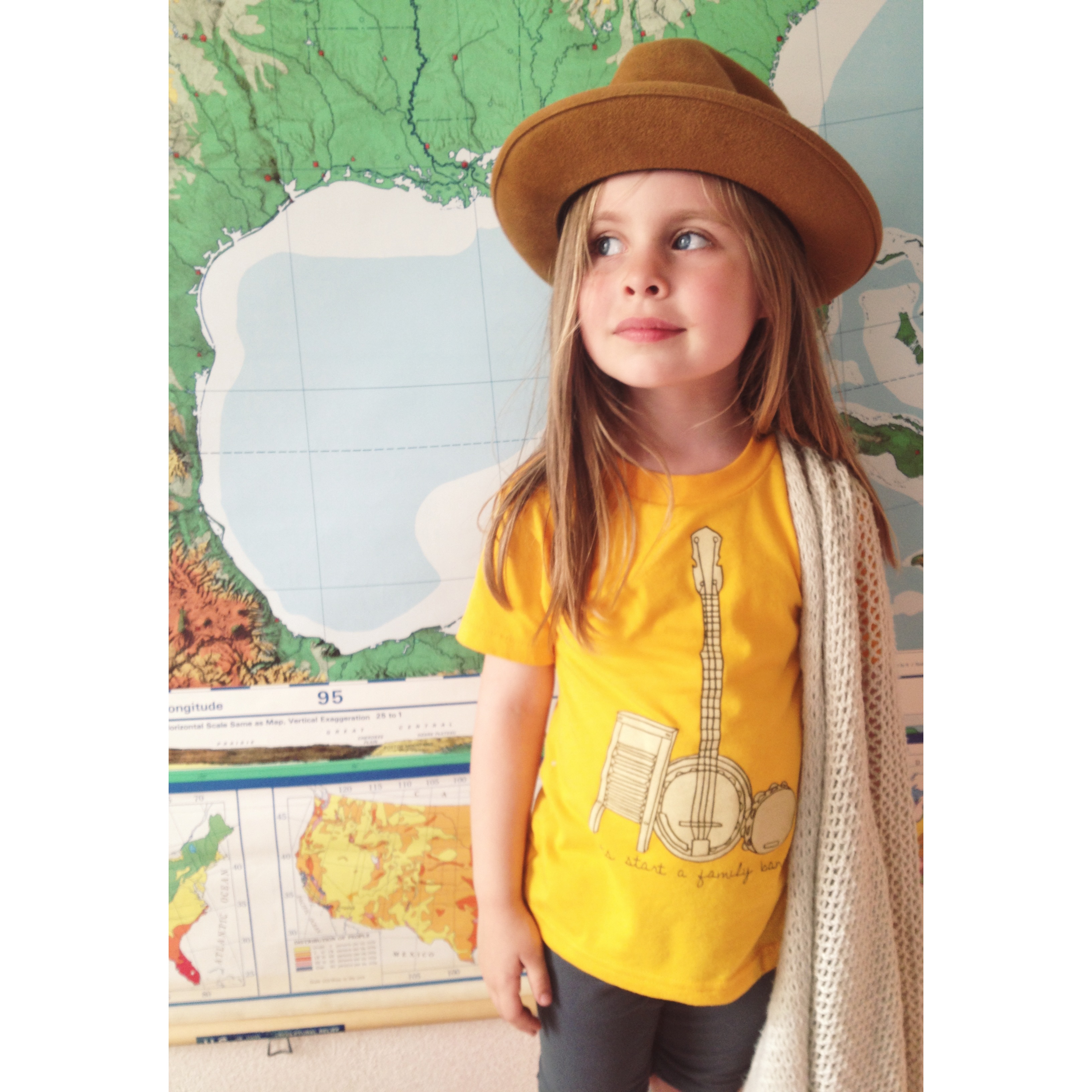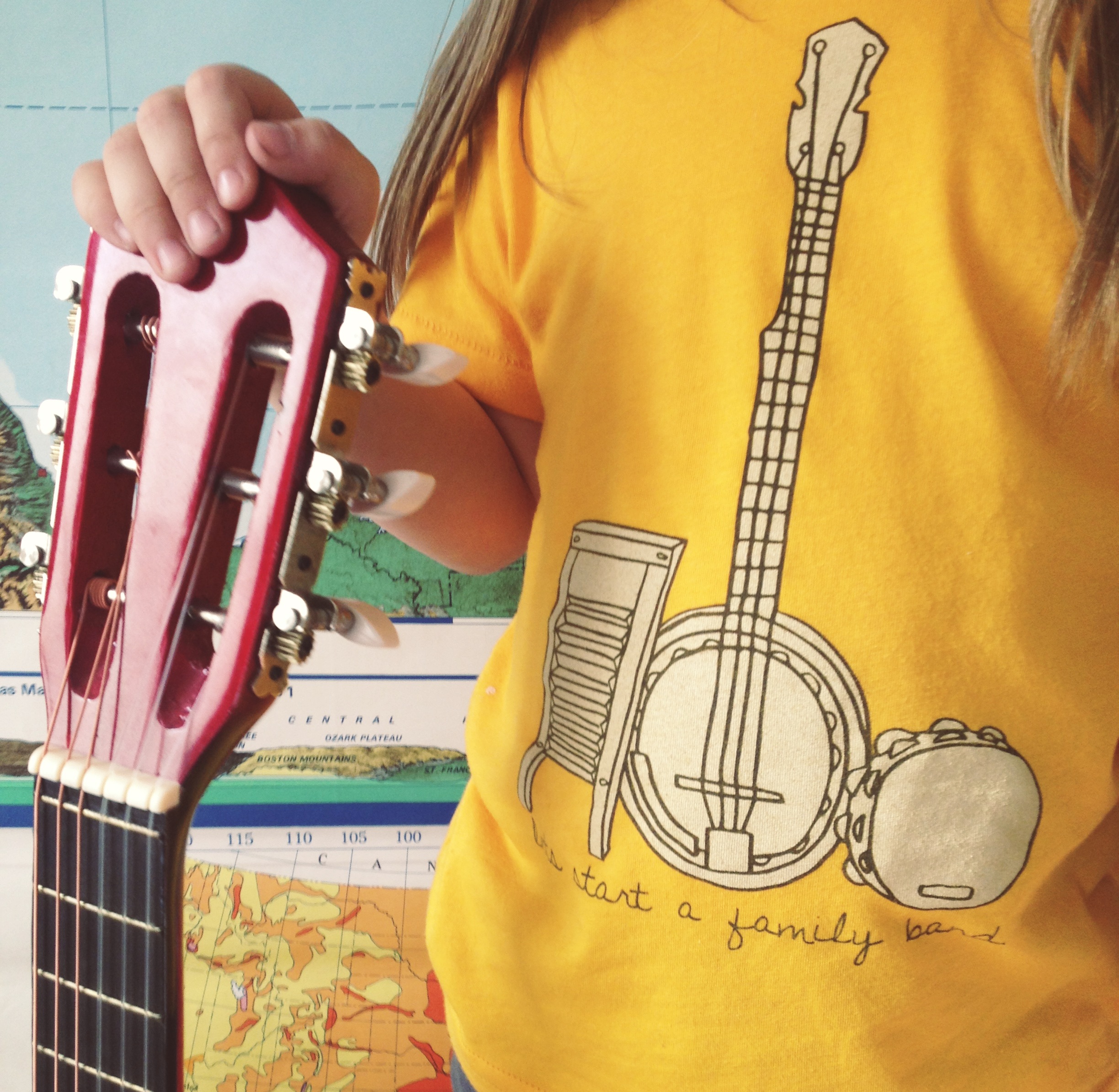 Illustrated family band tee. Custom screenprinted on American Apparel 50/50 blend in Gold or Evergreen tee for a super soft vintage feel.