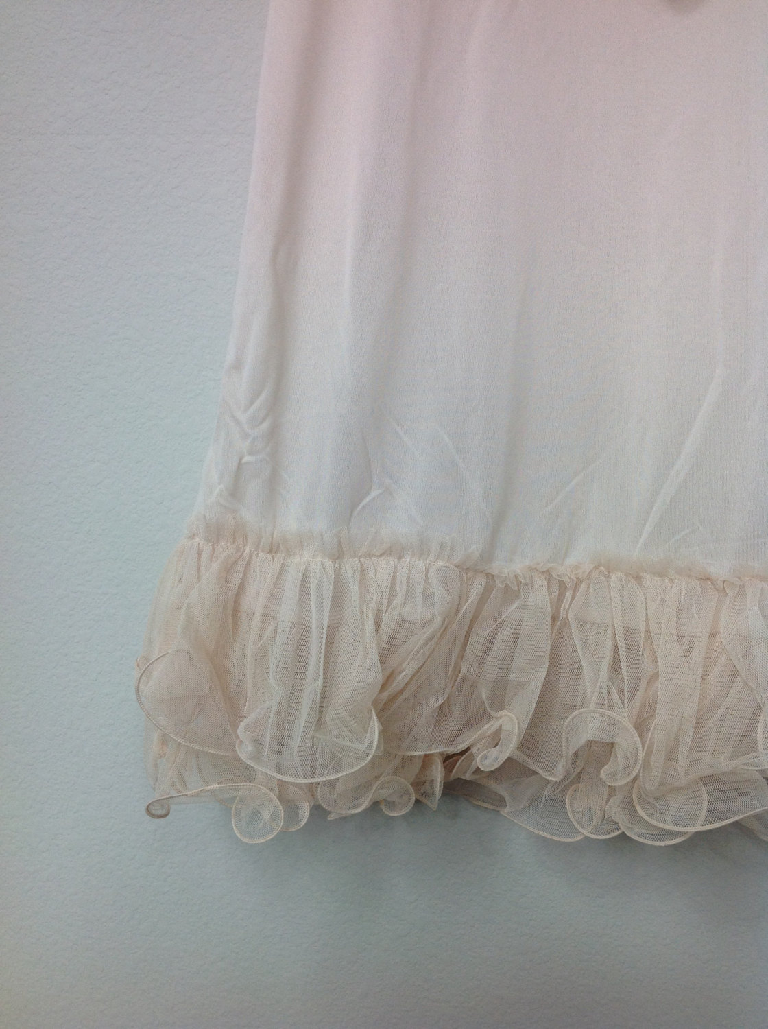 This is the perfect lightweight sheer polyester chiffon layering slip dress that not only adds a bit more coverage and length when worn under light colored, or sheer materials, but also adds to the prettiness, with an amazing tulle tiered layers ruffle hem. This slip dress works as the perfect skirt extender and hits at the knee for a bit of loveliness peeking out from under a dress or skirt!