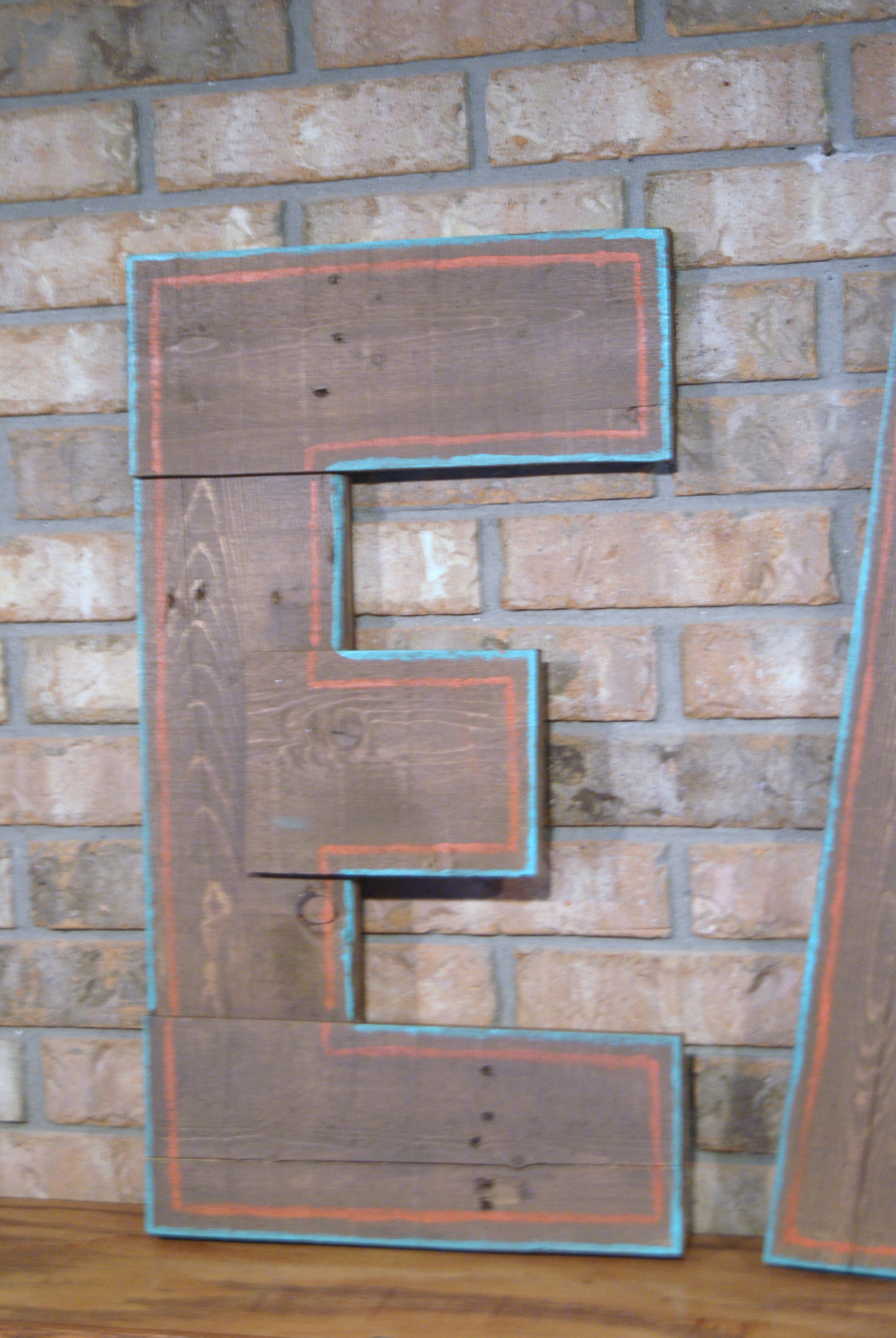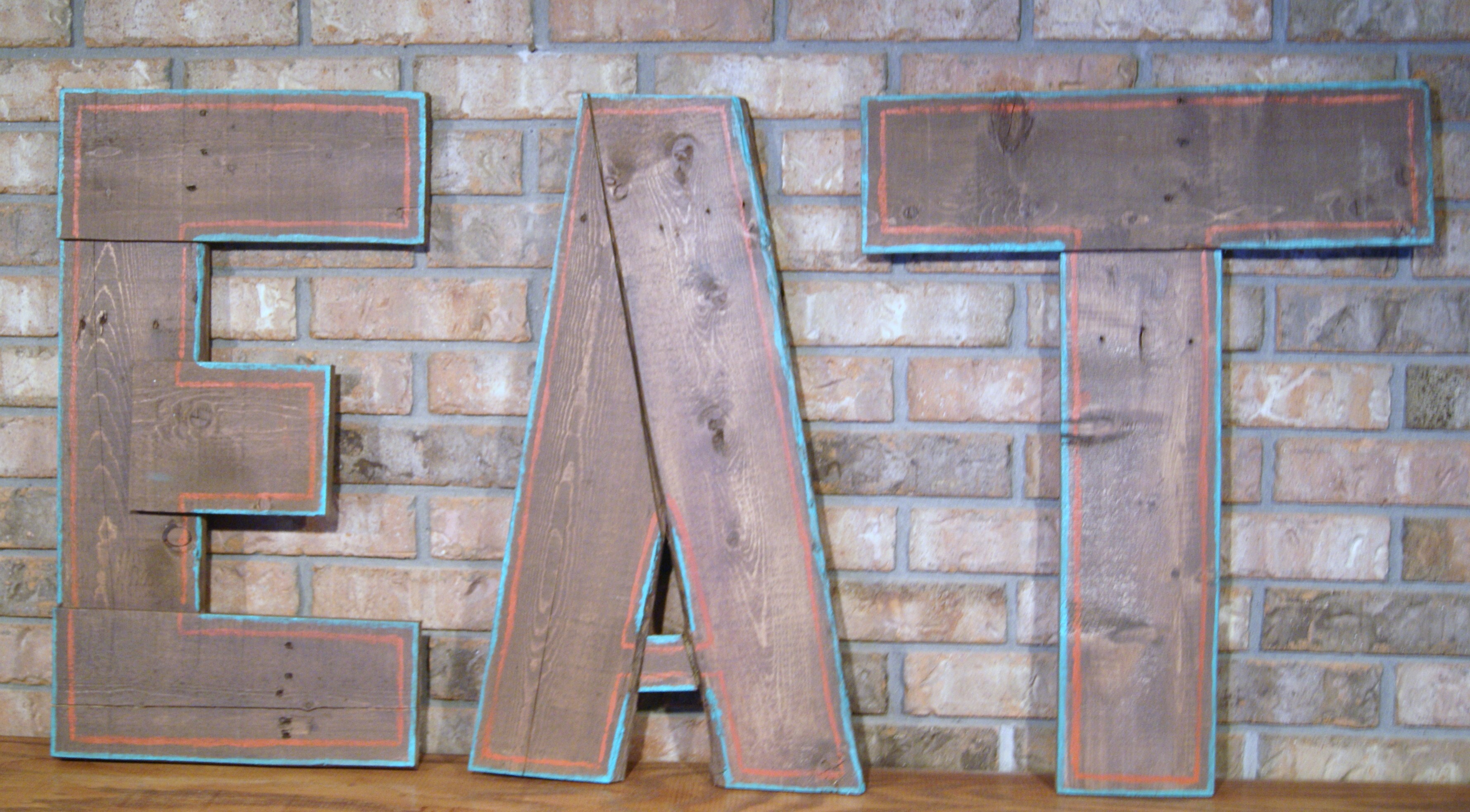 Free Shipping! Rustic Eat Sign. Handmade and hand painted over stained reclaimed wood. All letters measure 24" tall. The E is 13" wide and the T is 18" Wide. Saw tooth picture hangers included and installed. Can be hung any number of different ways. Or set on a shelf. We used a teal paint accented with burnt orange over chocolate stain. If you would like a different size or different colors call us or message 877-295-7077