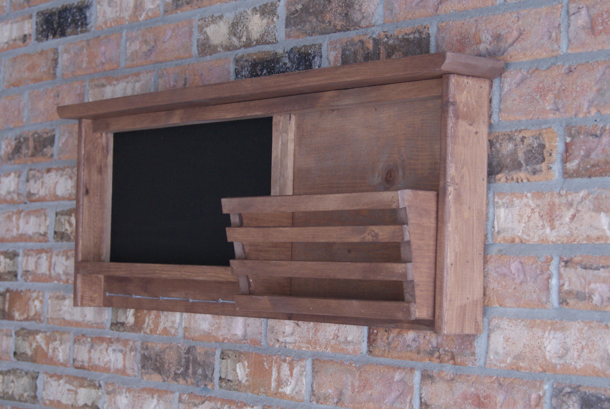 Rustic Chalkboard. Magnetic Chalkboard in Rustic Reclaimed Frame. Brass Key Holders and Shelf.