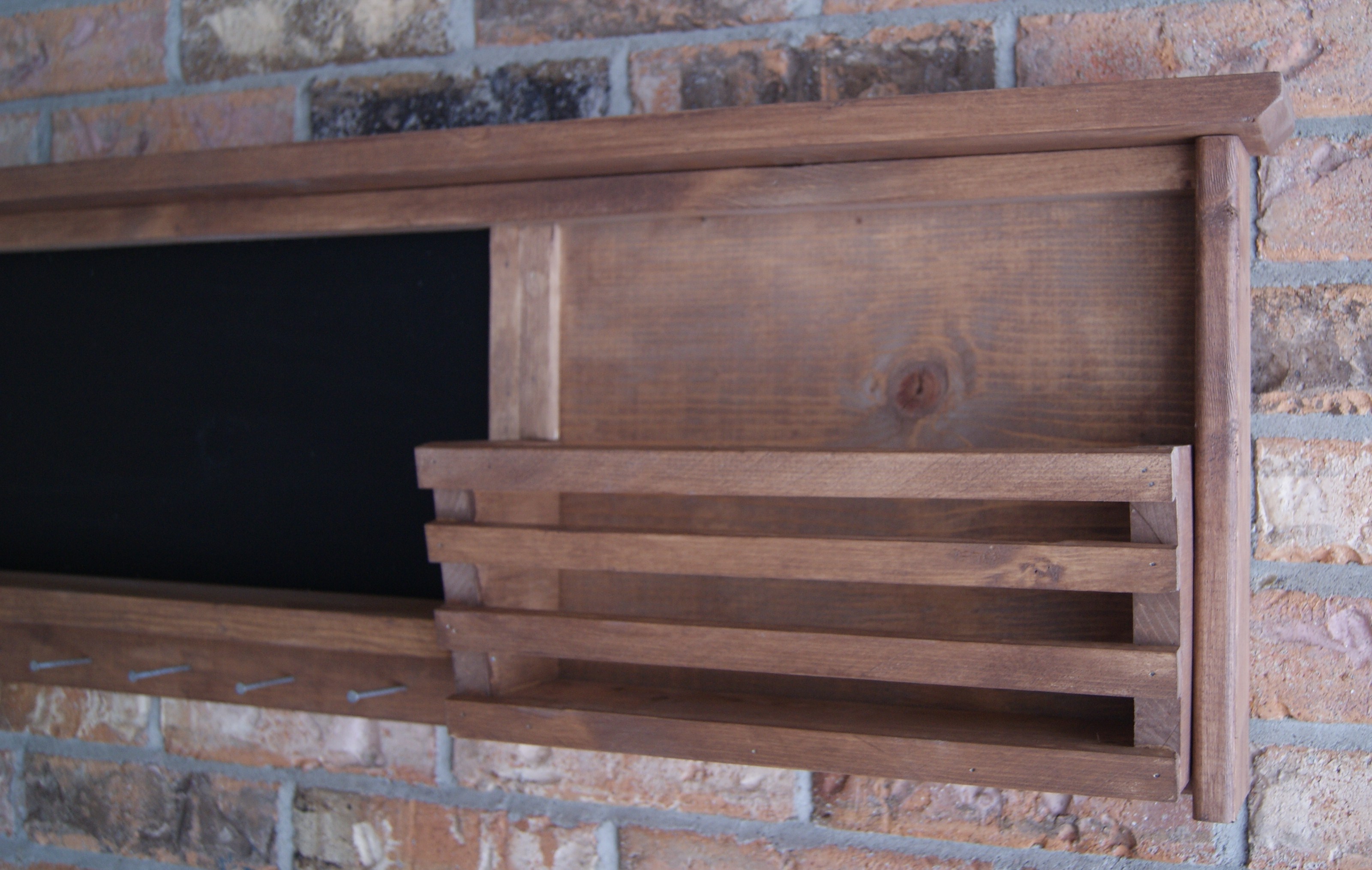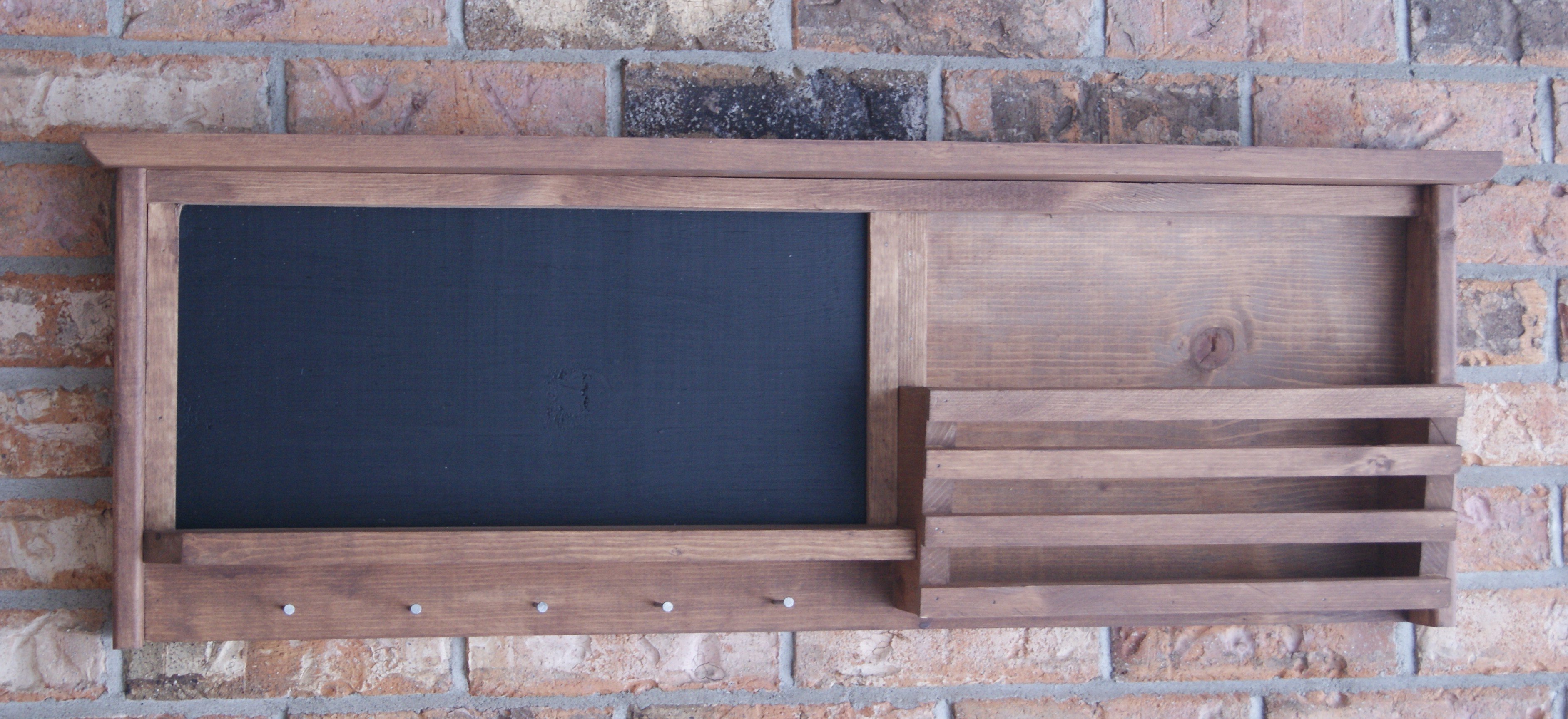 Rustic Chalkboard.  Magnetic Chalkboard in Rustic Reclaimed Frame.  Brass Key Holders and Shelf.-2