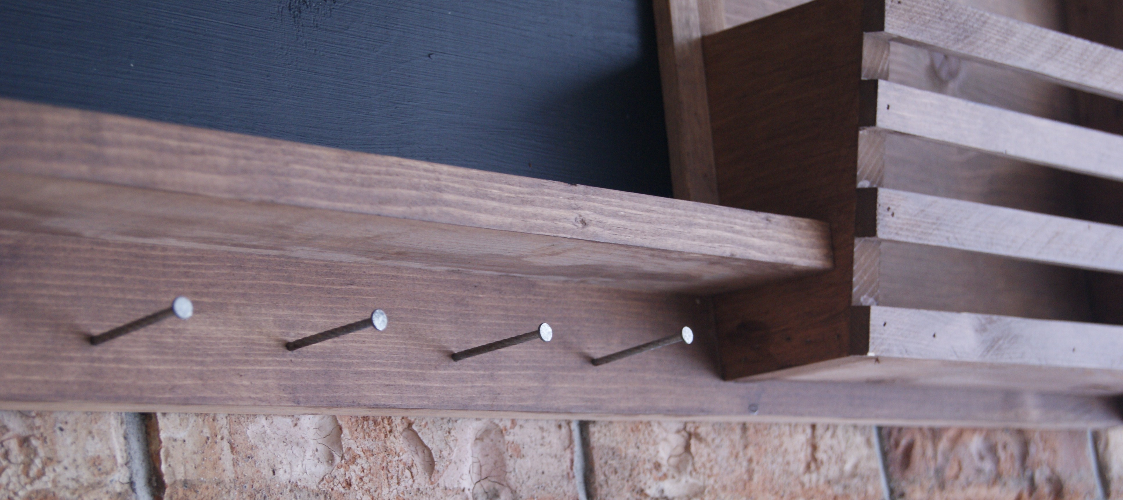 Rustic Chalkboard.  Magnetic Chalkboard in Rustic Reclaimed Frame.  Brass Key Holders and Shelf.-4