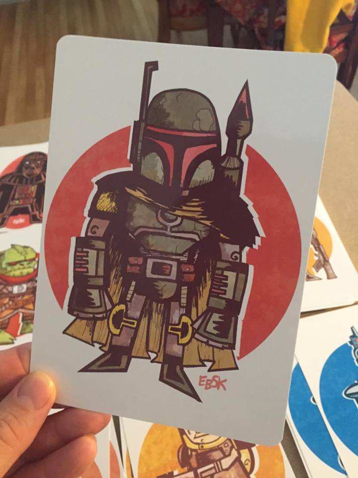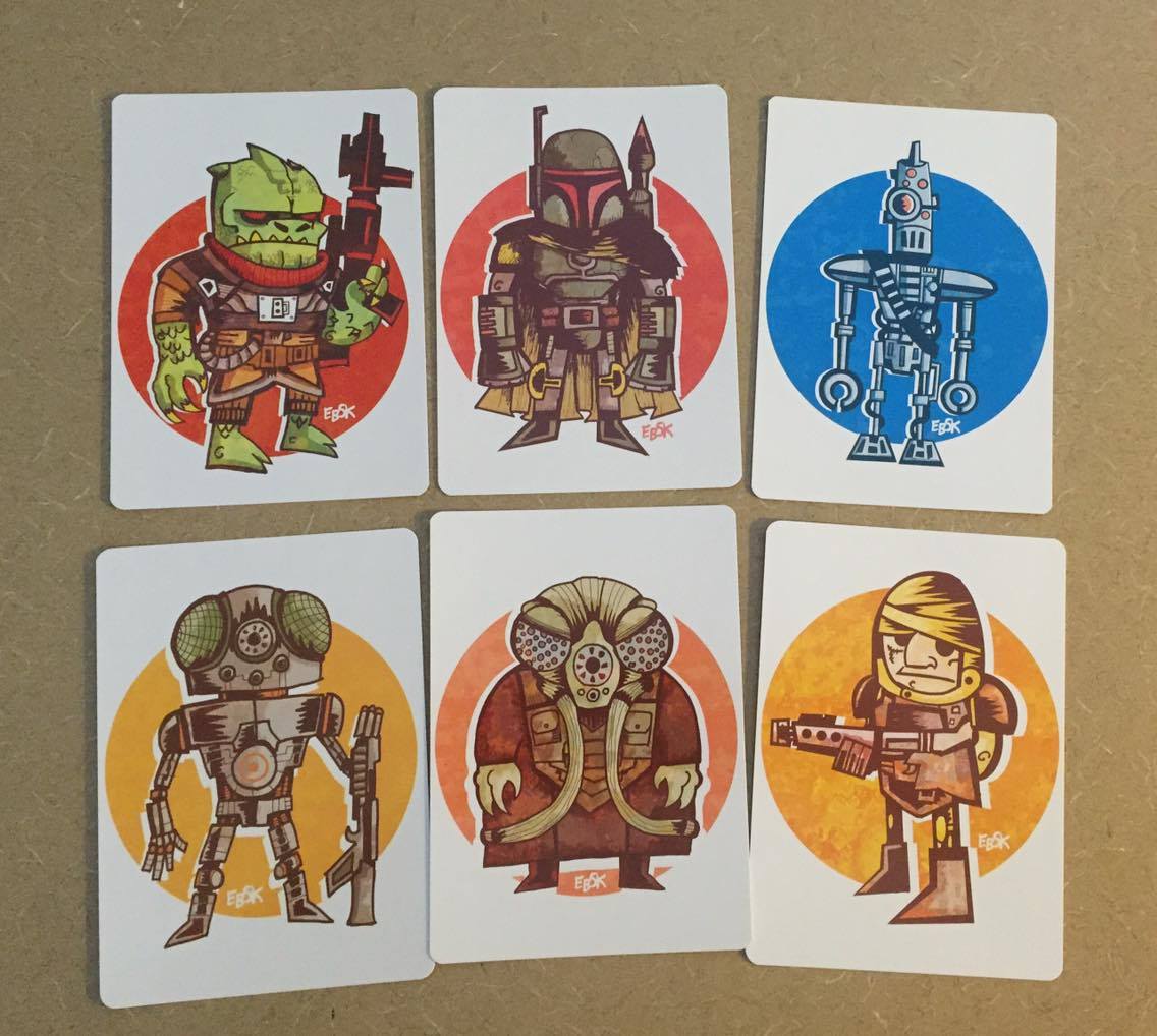 A set of 6 5" X 7" prints on cardstock. The dirty half dozen includes: Bossk, Boba Fett, IG-88, 4-Lom, Zuckuss and Dengar!
