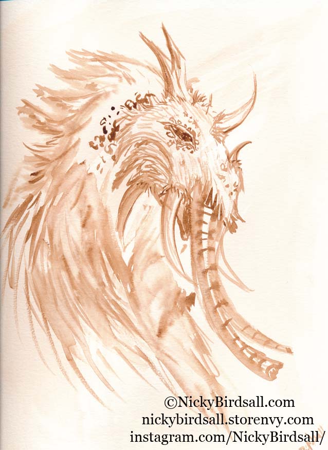 9x12 Watercolor sketch. This guy surprised me. I had no idea what I was painting. An elephant? A snuffleufagus? Lovecraftian? He is something all his own, but though eerie there was something warm and enjoyable to him in the end. Single brush and color on watercolor paper. Obviously no watermark on the original.