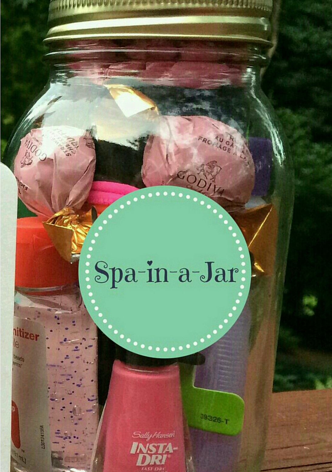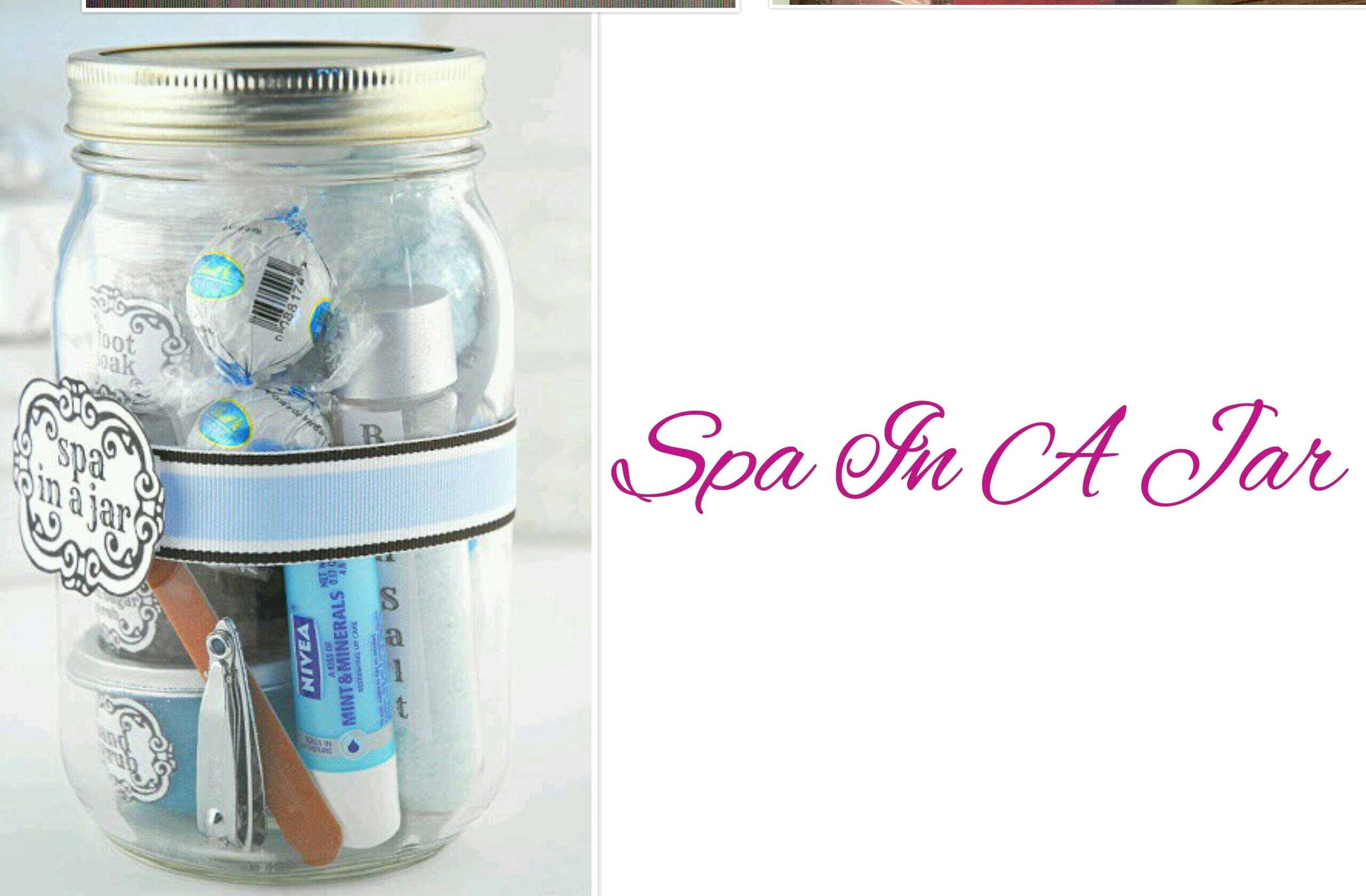 Each Spa In A Jar is a creatively color and scent themed and filled with different items from essential oils, bath salts, hand scrubs, bath fizzys, manicure and pedicure utensils, foot soaks, massage creams, shower gel, nail polish and so much more!!!