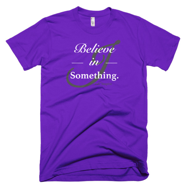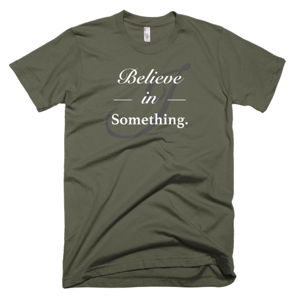 We don't care what you believe in, but believe in something! This American Apparel t-shirt is the smoothest and softest t-shirt you'll ever wear. Made of fine jersey, it has a durable, vintage feel. • Fine jersey • Slim fit • Double stitched • made in the USA, sweatshop free