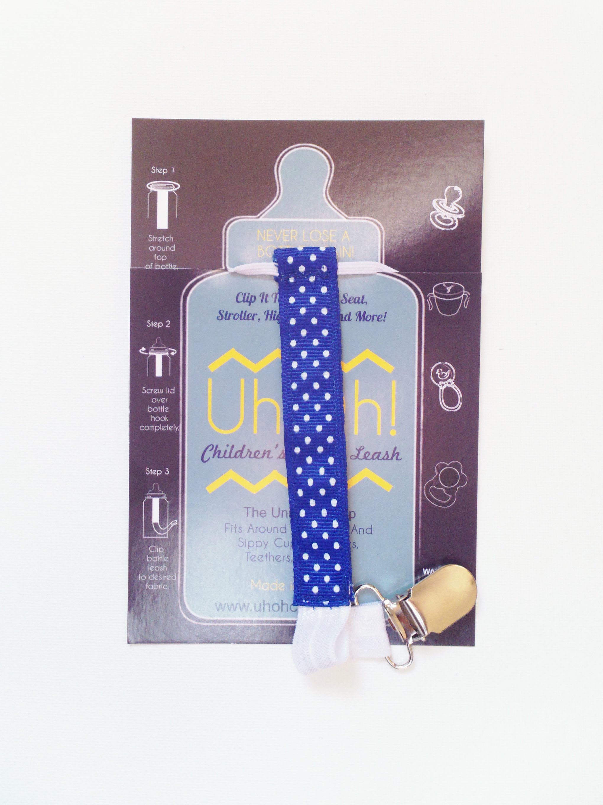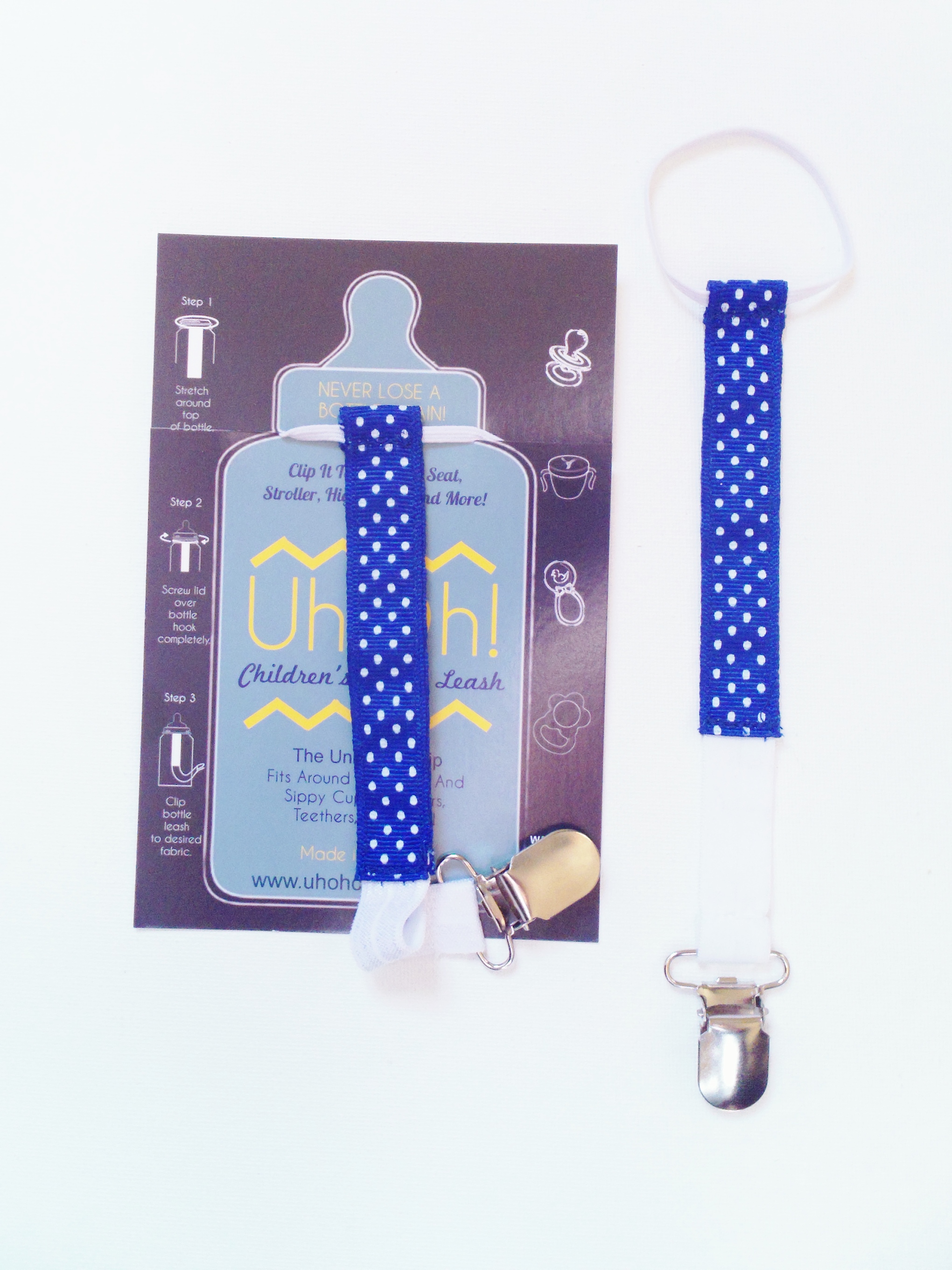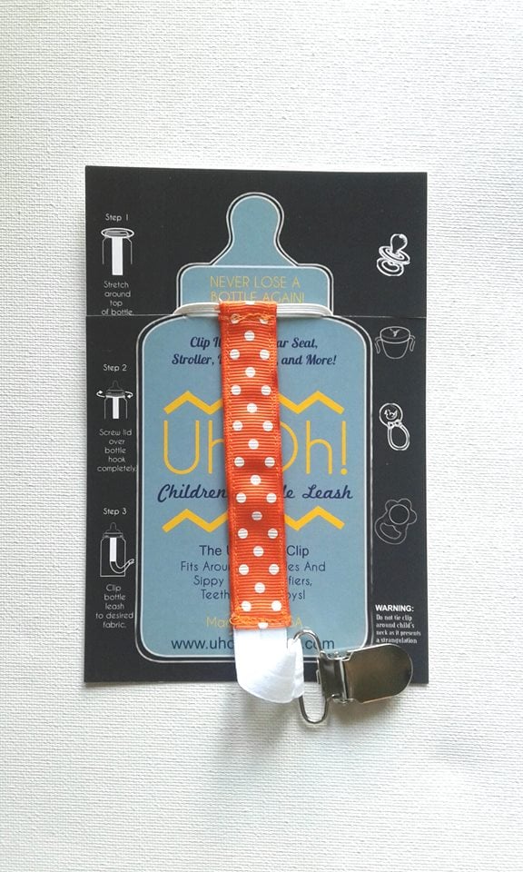 Have you ever driven your child around in a car or a stroller and had them throw their bottle, pacifier, toy, snack cup, or any item within reach and yell "UHOH!" as soon as it hits the floor? Or even in a restaurant? Not only can this be a 'germy' problem, but it can also be dangerous in the car should you feel compelled to retrieve the lost item to satisfy your child. If you've experienced this many times and are desperate for a solution, I'm here to help! The UhOh! Universal Clip is the solution to many of your "UHOH!" problems. Keep your child's bottle or sippy cup, pacifier, toy, snack cup, and more from falling to the ground or getting lost in your car by hooking your UhOh! Universal Clip around top of the un-lidded bottle. turn the bottles lid over the hook completely and then attach your clip to the desired fabric to keep your child's bottle within reach and off the ground. The hook is expandable to fit any size bottle or sippy cup! The hook can tie to all pacifiers, toys, snack cups, and more. This accessory is original and patent pending. It is not your average pacifier clip and it can be used for all uses mentioned above, no need for extra attachments or accessories. UhOh! bottle leashes are hand made in Lebanon, Pennsylvania by yours truly. Please contact me with an questions or special orders. For custom patterns, you can enter your request through my Custom Universal Clip item.