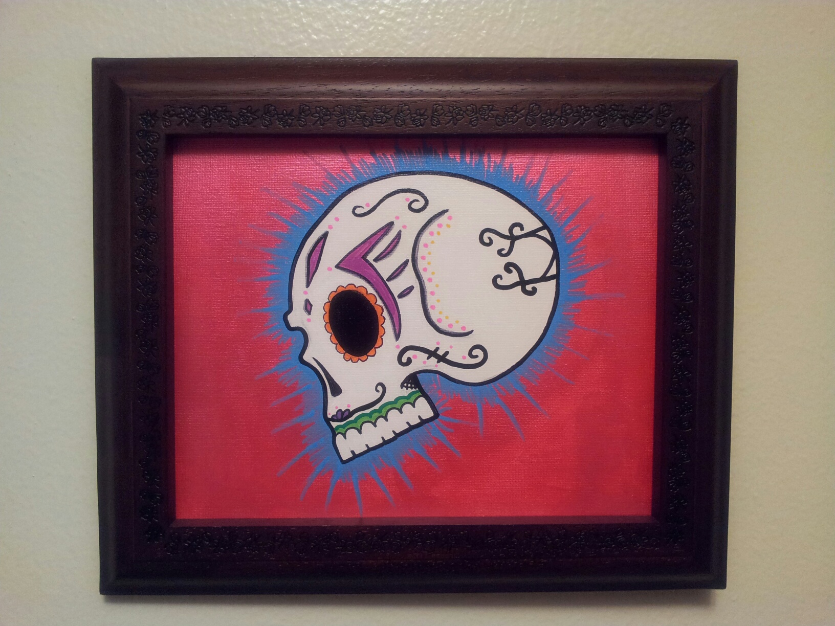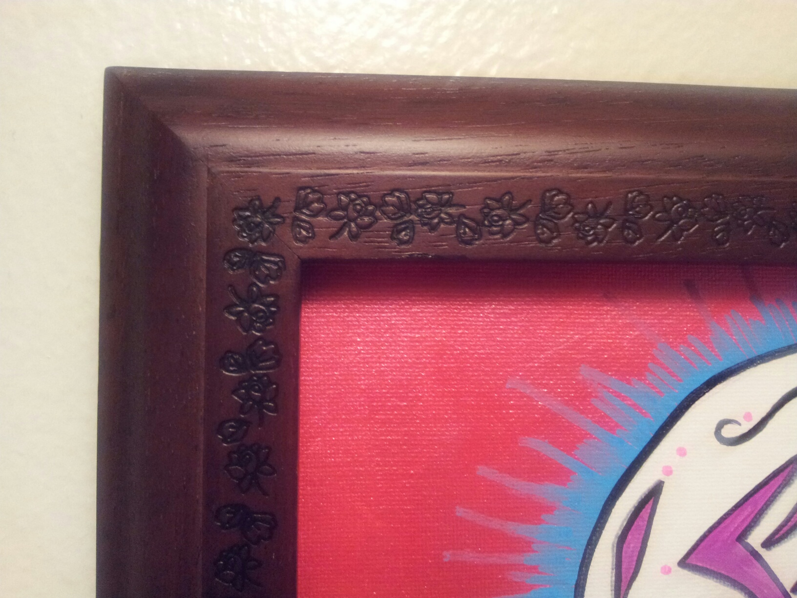 This is an 8X10 mixed media canvas panel, acrylic / acrylic marker. Comes in a beautiful wooden frame, purchase includes mini sticker pack.