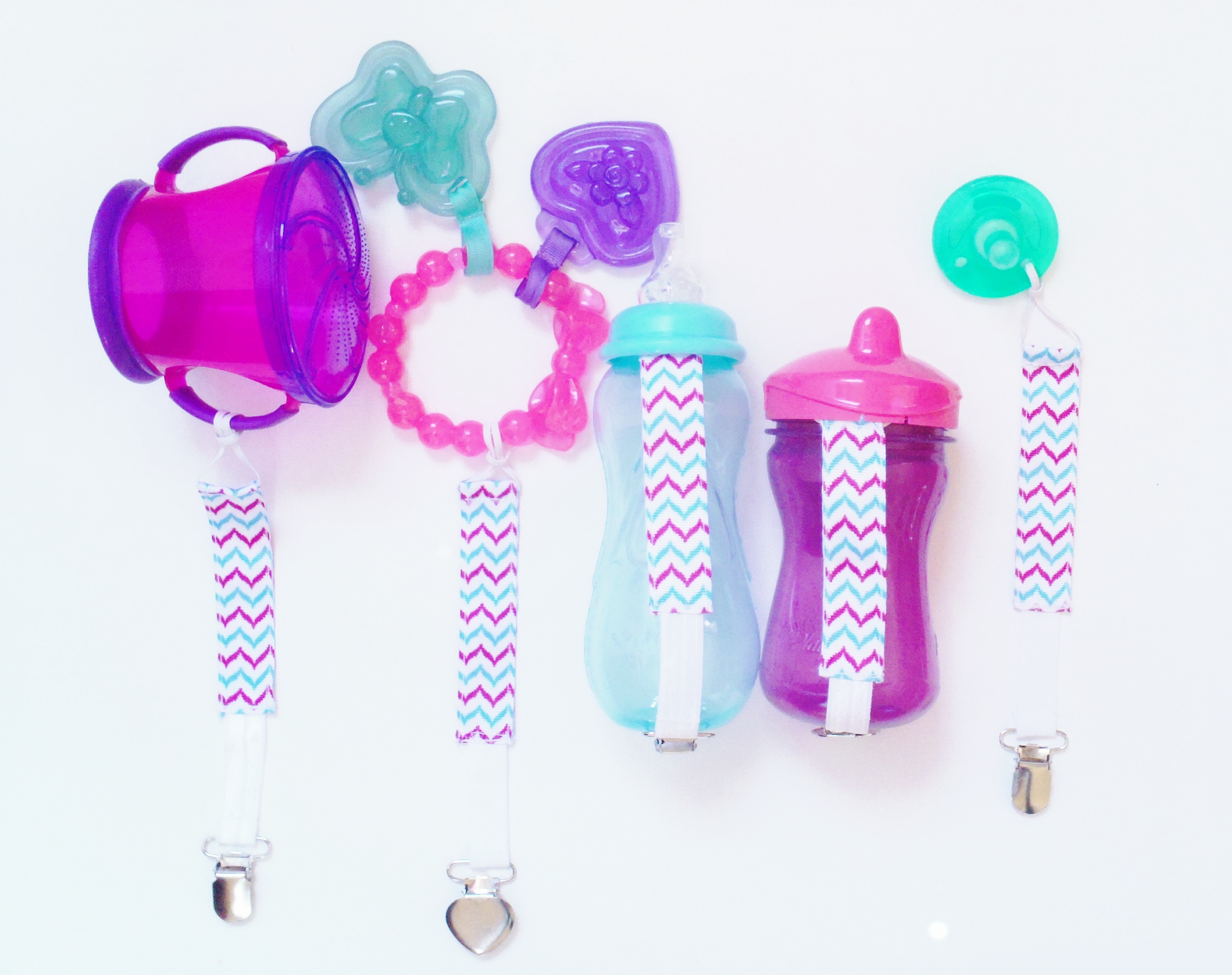 The hook can tie to all pacifiers, toys, snack cups, and more.