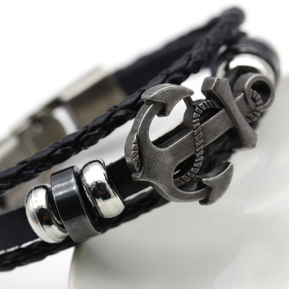 Leather Anchor Bracelet Features: Material:Alloy +PU Leather Color: Black length: 19.5cm/7.67inch Anchor Size: 3*2.2cm/1.18*0.86 Metal Alloy. Contains nickel. May discolor over time.
