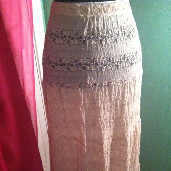 Elastic Waist. See-through design. Length Waist to Ankle 38". Color: Taupe