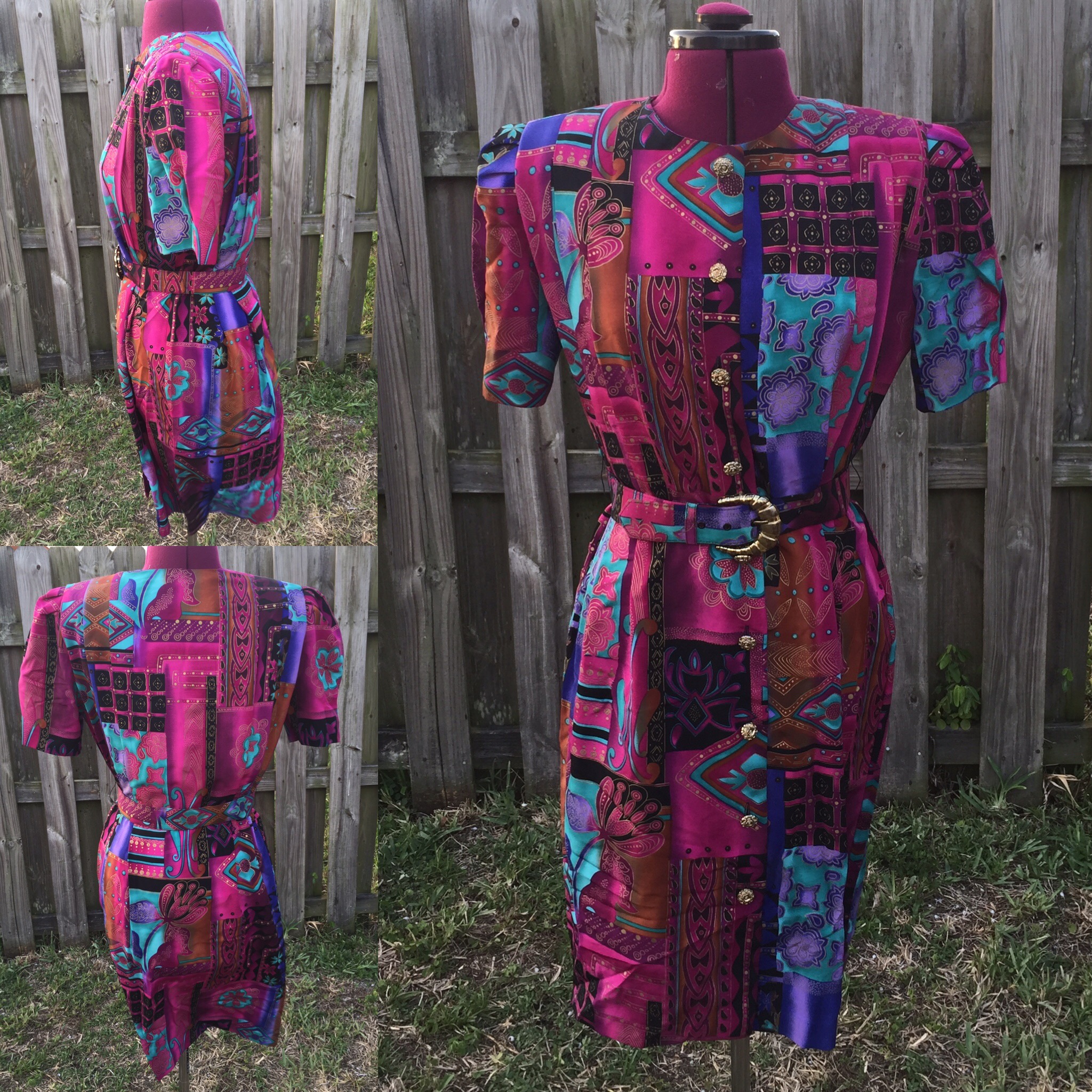 Multi Print Dress With Matching Belt. Size 12P/True Medium.
