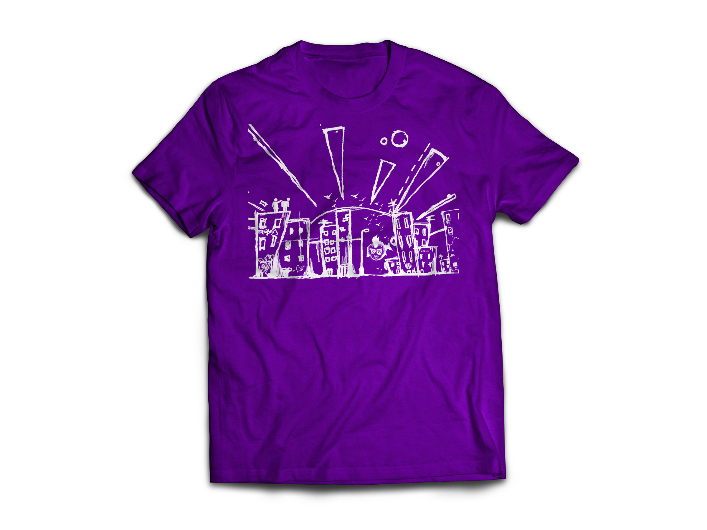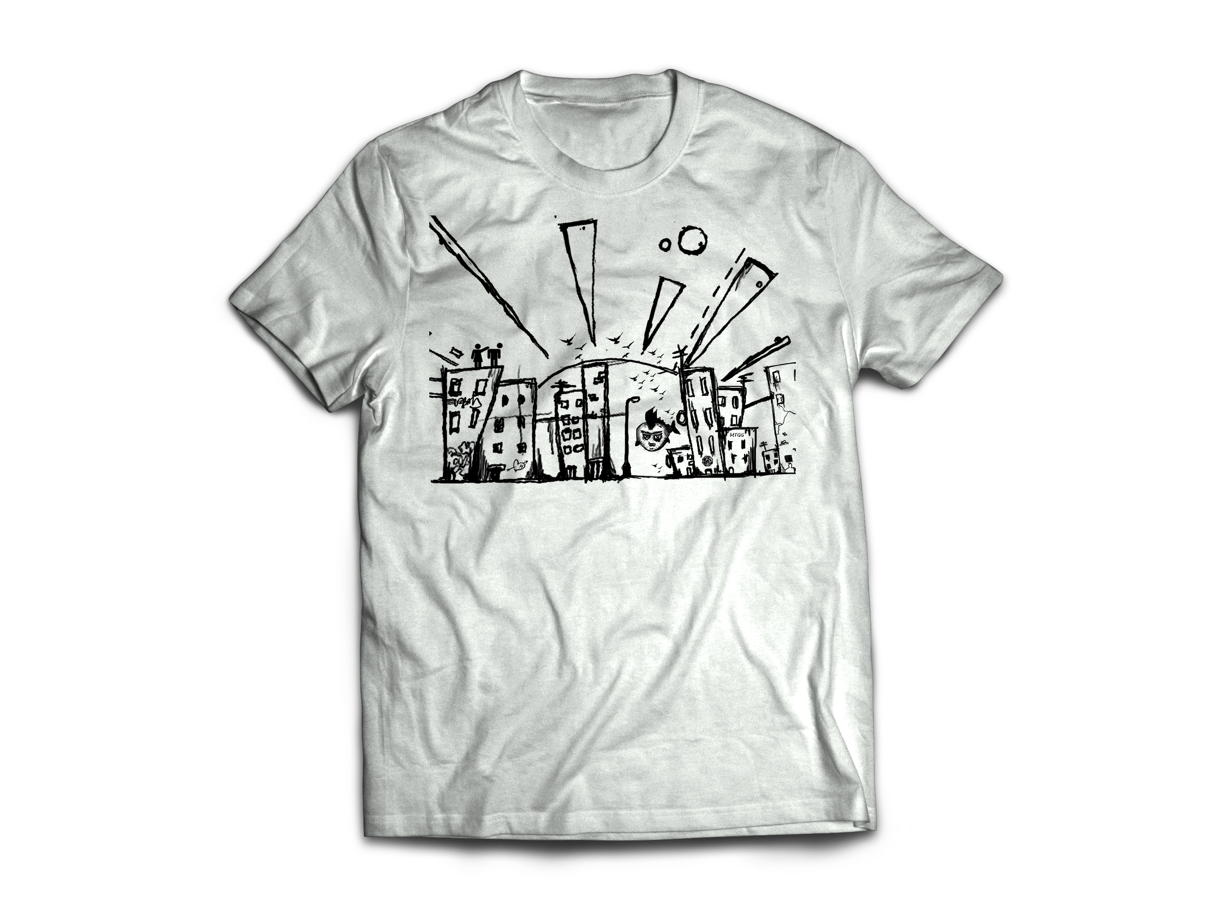 This style of shirt designing is preferred by Chris, as he calls it "urban jungalism art." Taking the city building and turning them into animals playgrounds. This design shows the urban jungalism style for a fish in his massive fish tank.