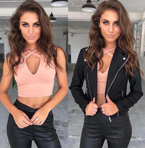 • Knitted • V Neck • Criss-Cross Detailing • Fitted • Sleeveless • Zipper Openings • Spandex and Polyester