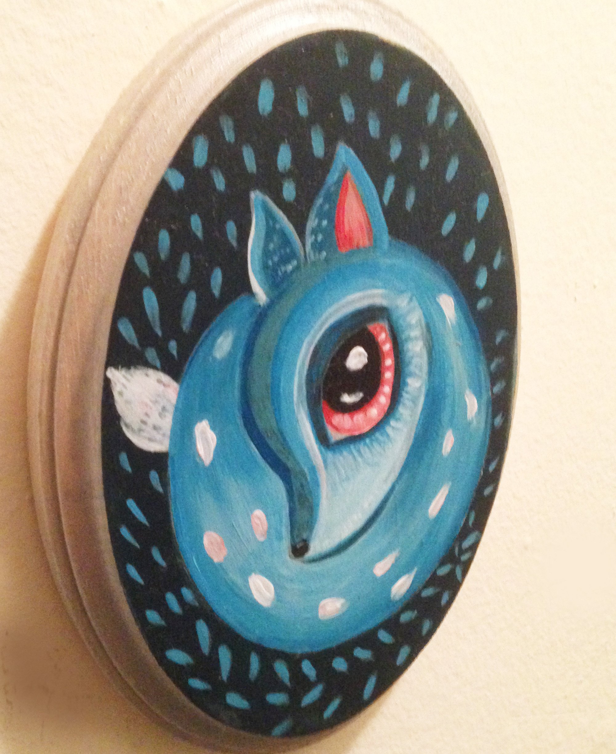 Original acrylic painting by maya Devi 5in x 7in round wooden plaque ready to hang