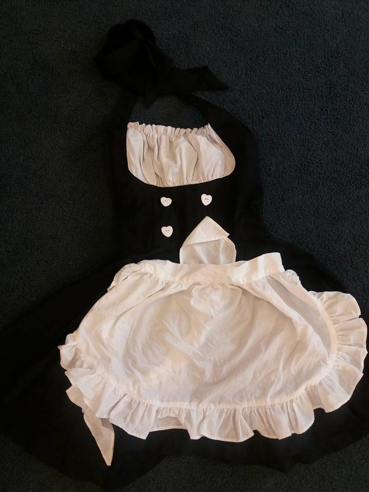 Great for maid cafe's, anime cons, or Halloween! Medium sized halter dress with apron. Cute heart shaped buttons. Size: M